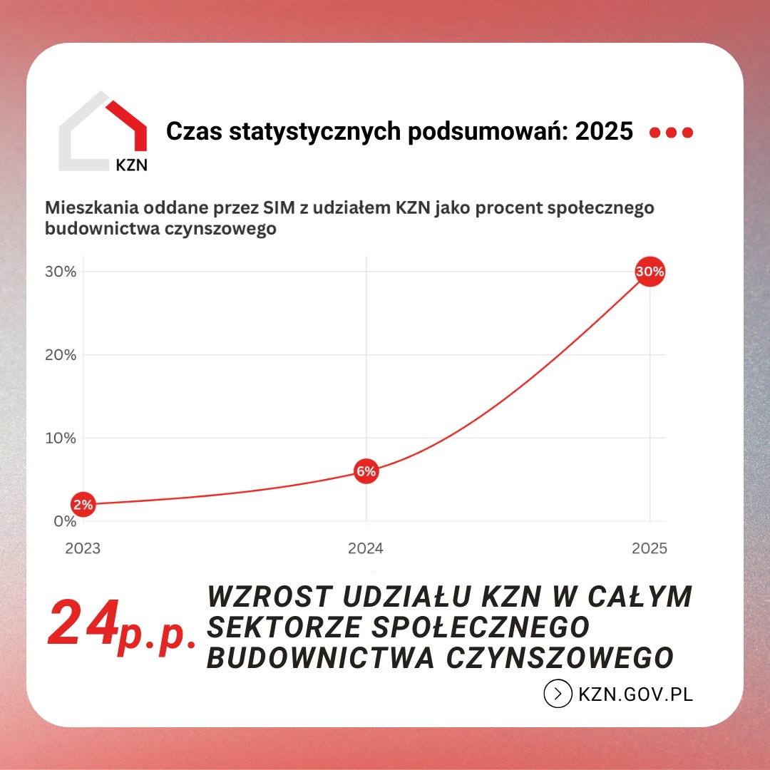 - rola KZN w sektorze społecznego budownictwa czynszowego wzrosła o 24 p.p.