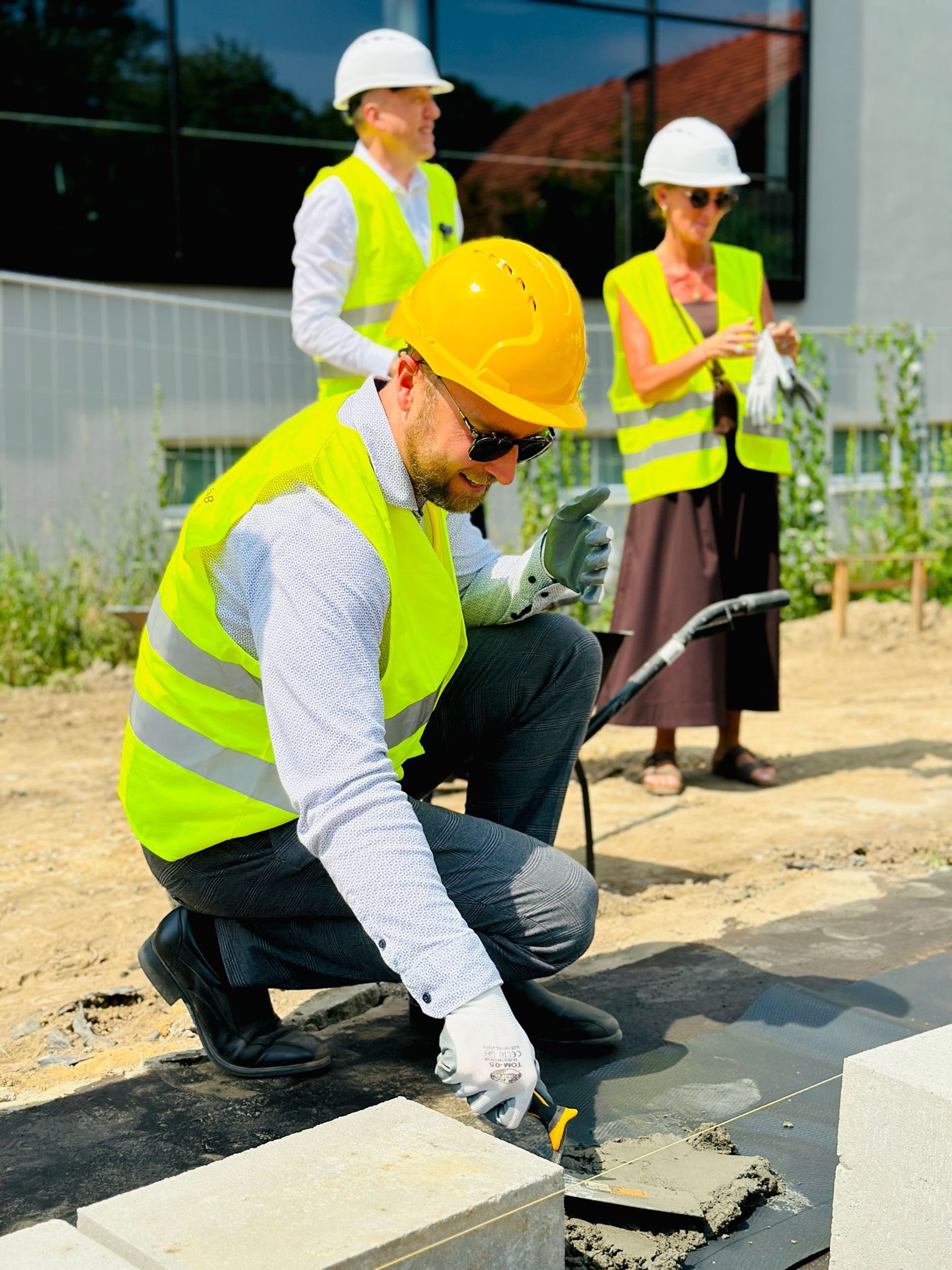 W ubiegłym tygodniu na placu budowy wmurowaliśmy kamień węgielny w fundamenty bloku wielorodzinnego – to było symboliczne otwarcie 3. inwestycji w tamtym tygodniu!