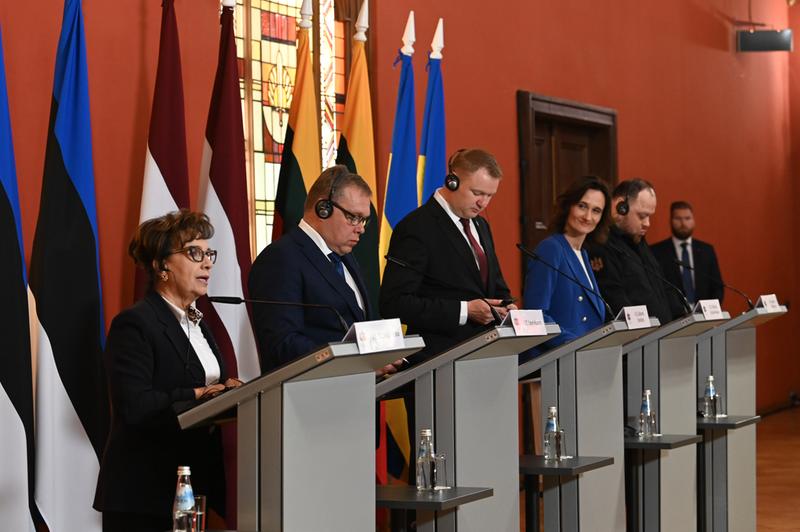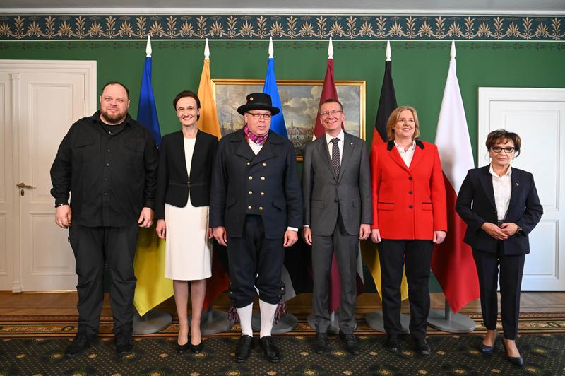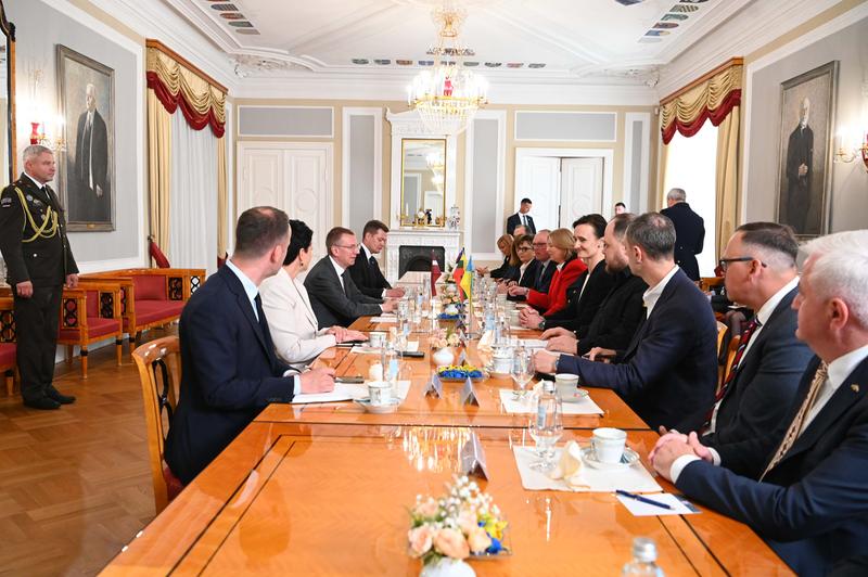 Pirmajā vizītes dienā Seima maršale kopā ar Lietuvas parlamenta priekšsēdētāju Viktoriju Čmilytë-Nielseni, Igaunijas parlamenta priekšsēdētāju Lauri Hussaru, Ukrainas Verhovna Radas priekšsēdētāju Ruslanu Stefančuku un Vācijas Bundestāga priekšsēdētāju Berbeli Bāsu piedalījās sarunās ar jaunievēlēto Valsts prezidentu Edgaru Rinkēviču. Tā bija pirmā Latvijas valsts vadītāja un ārvalstu delegāciju tikšanās pēc prezidenta zvēresta nodošanas. Parlamentu priekšsēdētāji apsveica Edgaru Rinkēviču ar stāšanos amatā. Sarunu laikā īpaši izcelts Ukrainas jautājums un uzsvērti NATO samita Viļņā lēmumi.