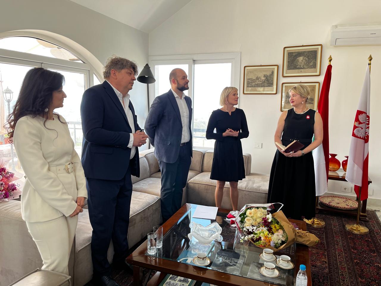 W trakcie spotkania miało miejsce uroczyste wręczenie odznaczenia „Bene Merito" przyznanego przez Ministra Spraw Zagranicznych RP pani Mayi Outayek, w uznaniu za jej zasługi na rzecz promowania Polski, pomoc polskim obywatelom w Libanie podczas konfliktu zbrojnego w 2024r. i wspierania współpracy polsko-libańskiej.