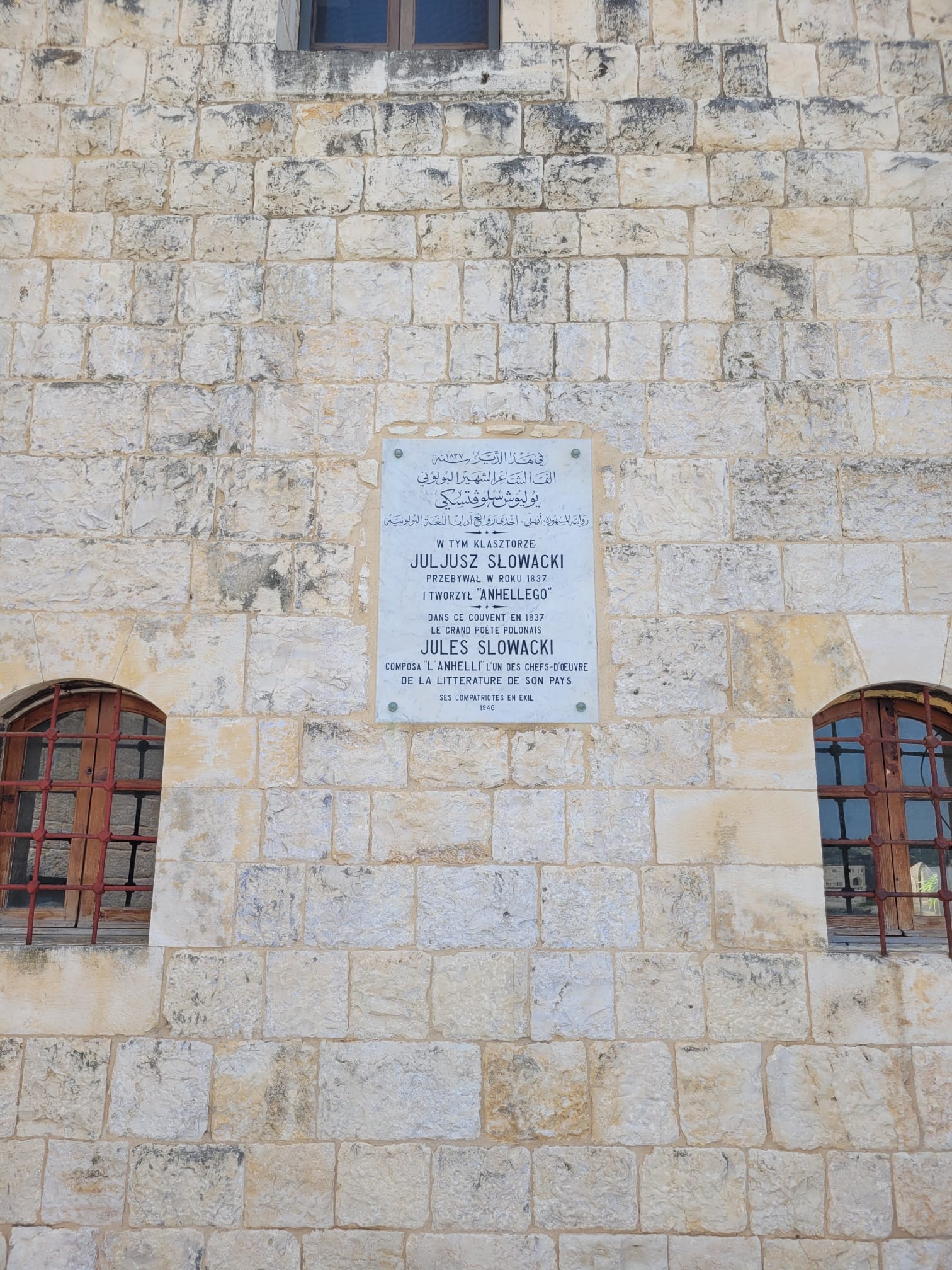 Kolejnym punktem wizyty było zwiedzanie celi Juliusza Słowackiego w klasztorze św. Antoniego w Ghazir. To właśnie w tym miejscu, w 1837 roku, Słowacki spędził 45 dni podczas swojej podróży po Bliskim Wschodzie. W czasie pobytu powstała pierwsza wersja jego poematu „Anhelli”. W klasztorze znajduje się wystawa zainstalowana w 2022 roku przez Muzeum Literatury w Warszawie, upamiętniająca to wydarzenie.