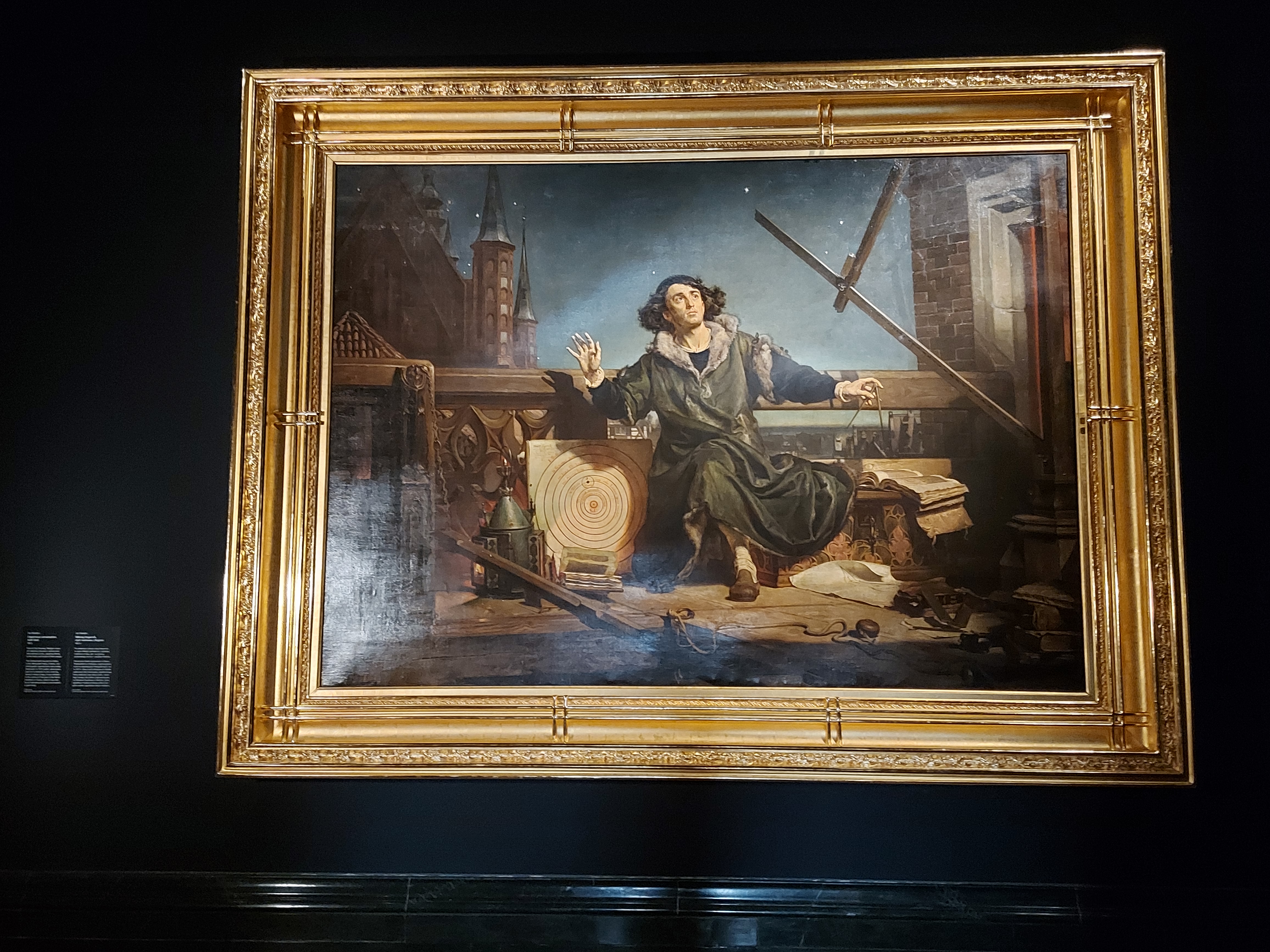 Matejko zasłużył sobie na ogromne uznanie Polaków swymi wielkimi, dynamicznymi i szczegółowymi prezentacjami kluczowych momentów w historii narodu. Prezentowane dzieło upamiętnia osiągnięcia polskiego astronoma Kopernika (1473-1543), pierwszego człowieka od czasów starożytnych Greków, który odkrył, że Słońce, a nie Ziemia, znajduje się w centrum układu planetarnego i że to wokół niego krąży Ziemia.