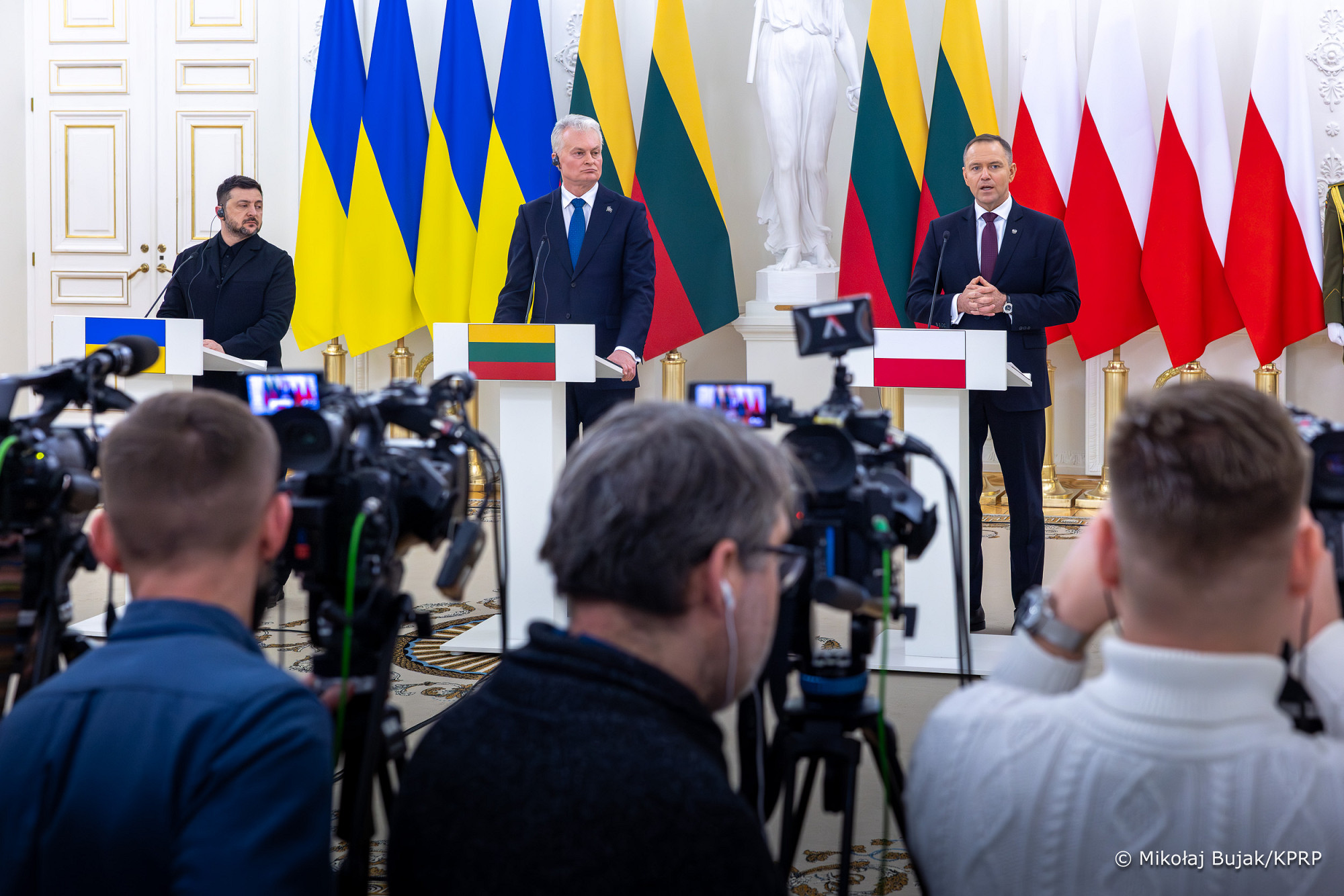 Vizitas Lietuvoje baigėsi Lenkijos Respublikos Prezidento, Lietuvos Respublikos Prezidento ir Ukrainos Prezidento susitikimu su žiniasklaidos atstovais.