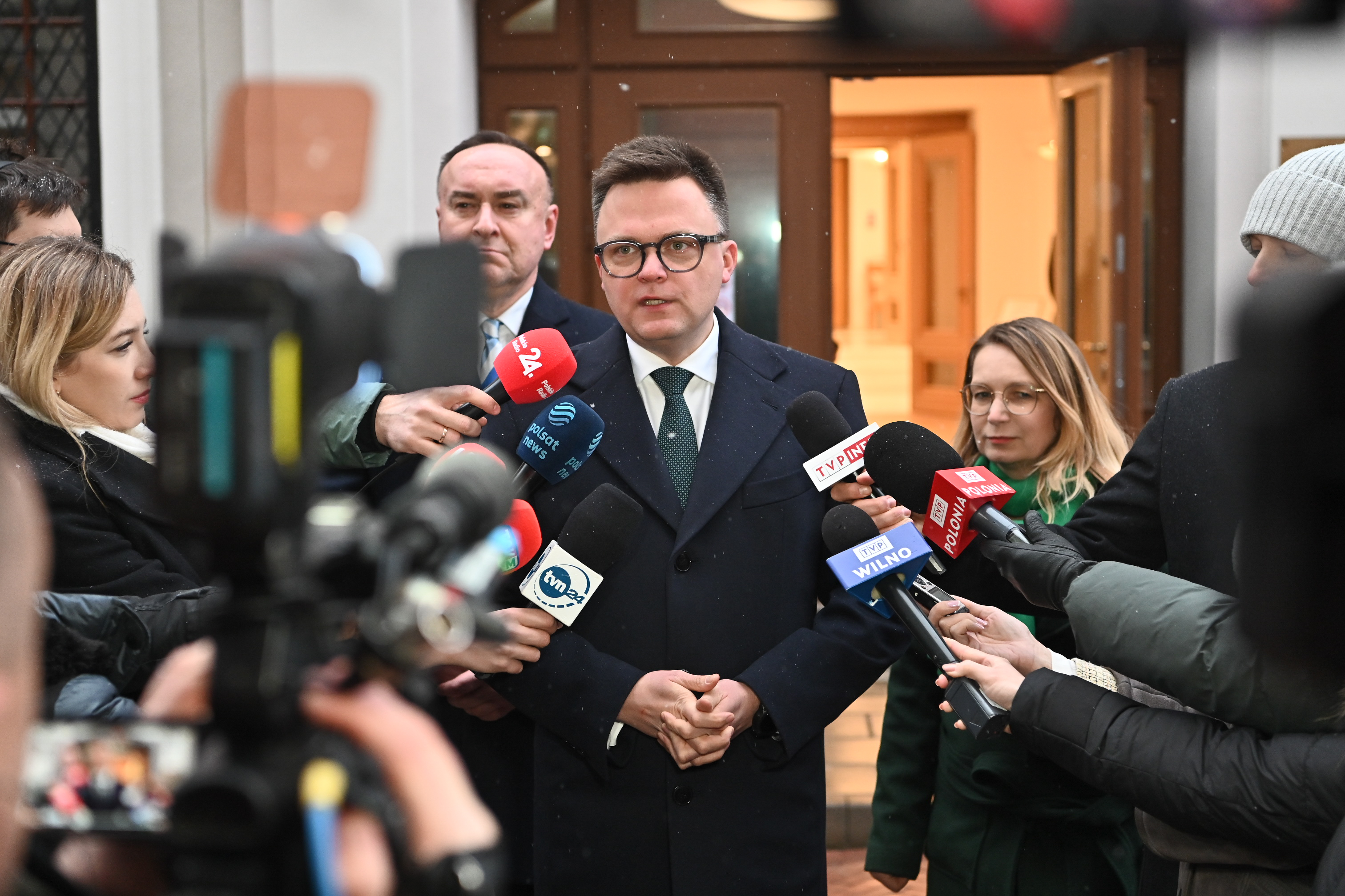 Kalbėdamas po susitikimo žiniasklaidai Seimo maršalka pasidžiaugė, kad tai Lietuva tapo jo pirmosios oficialios kelionės į užsienį tikslu. - Lenkiją ir Lietuvą istoriškai visados siejo giminystė. Tarp brolių ir seserų būna sunkių momentų, tačiau jie drauge išgyvena ir daug gražių akimirkų. Mūsų užduotis šiandien, šioje beprecedentiškai sudėtingoje situacijoje, kurioje atsidūrėme kartu, yra paspartinti sprendimų paieškos procesus visose srityse, kurios mus skiria, siekiant kuo daugiau nuveikti tose srityse, kurios mus vienija", - sakė maršalka Hołownia. - Šiuo metu Lenkija siekia atkurti savo tvirtą poziciją, kurią ji turėtų užimti ES, Šiaurės Atlanto aljanse ir visuose kituose formatuose. Noriu patikinti, kad Lietuva, Baltijos šalys, visada bus mūsų strateginiai partneriai kuriant Europos ir pasaulio saugumą", - pabrėžė Seimo maršalka. S. Hołownia pridūrė, kad pokalbyje su pirmininke V. Čmilyte-Nielsen, be kita ko, kalbėta apie karinį bendradarbiavimą, paramą Ukrainai ir kitą Rusijai taikomų sankcijų paketą, kuris, kaip pažymėjo, turėtų būti „absoliučiai įteisintas", kad V. Putino režimas negalėtų jo apeiti.