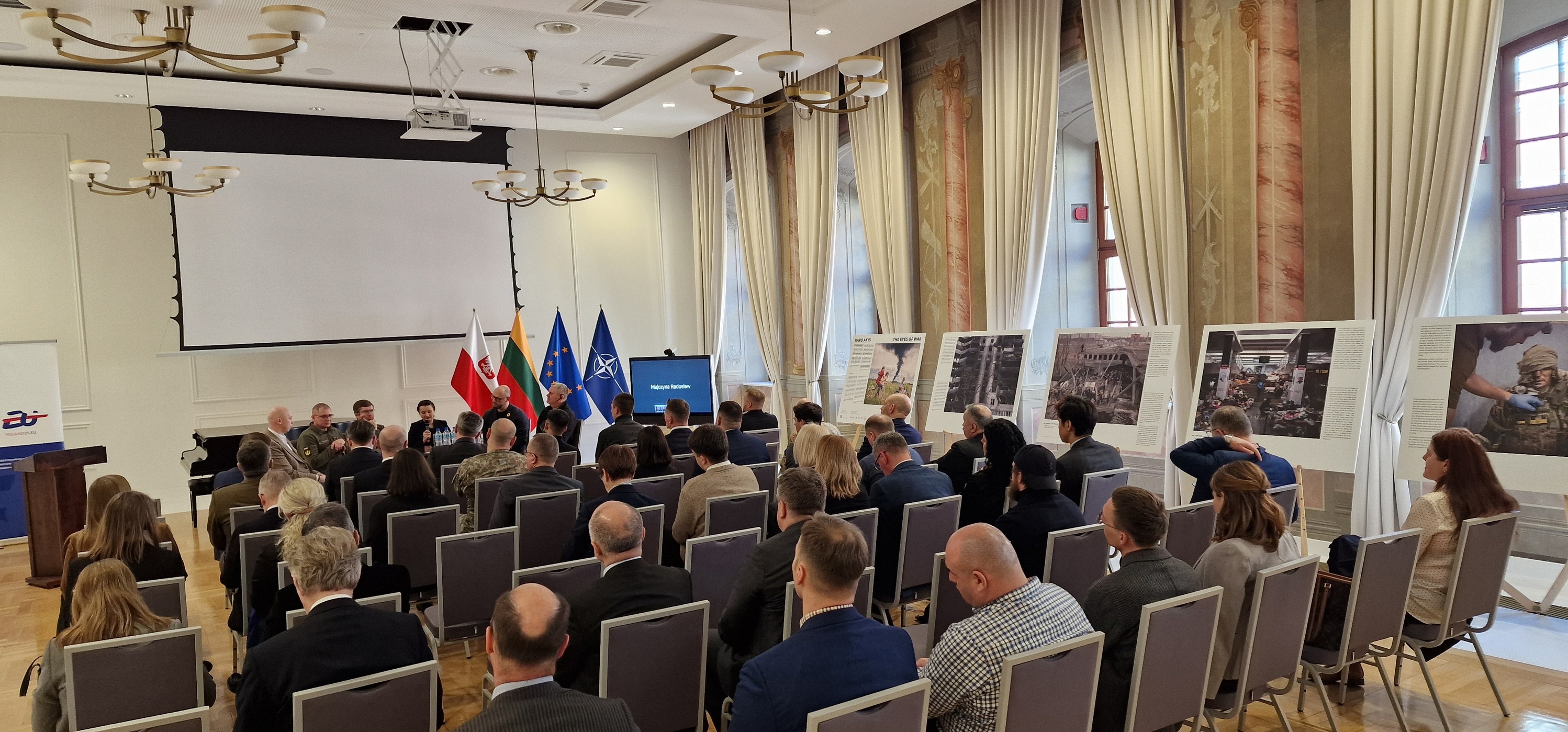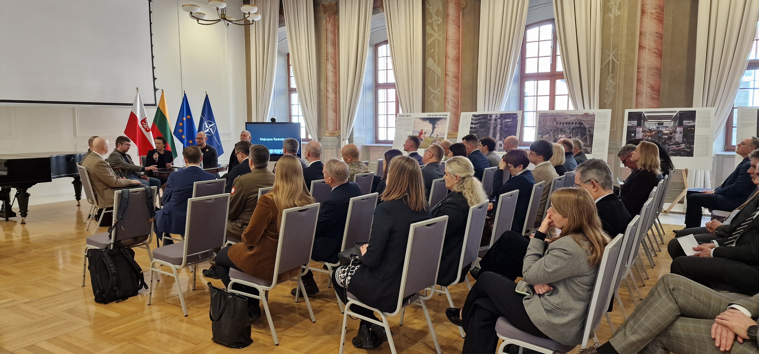 Diskusiją lydėjo fotografijų paroda „Karo akys”. Parodoje demonstruojamų nuotraukų, kuriose užfiksuotas karas Ukrainoje, autoriai – žinomi lenkų fotografai ir karo reporteriai – taip pat Rusijos agresijos liudininkai. Vasario 25 – kovo 14 dienomis paroda bus pristatoma ISM Vadybos ir ekonomikos universitete Vilniuje, iš kur ji persikels į Vytauto Didžiojo universitetą Kaune.