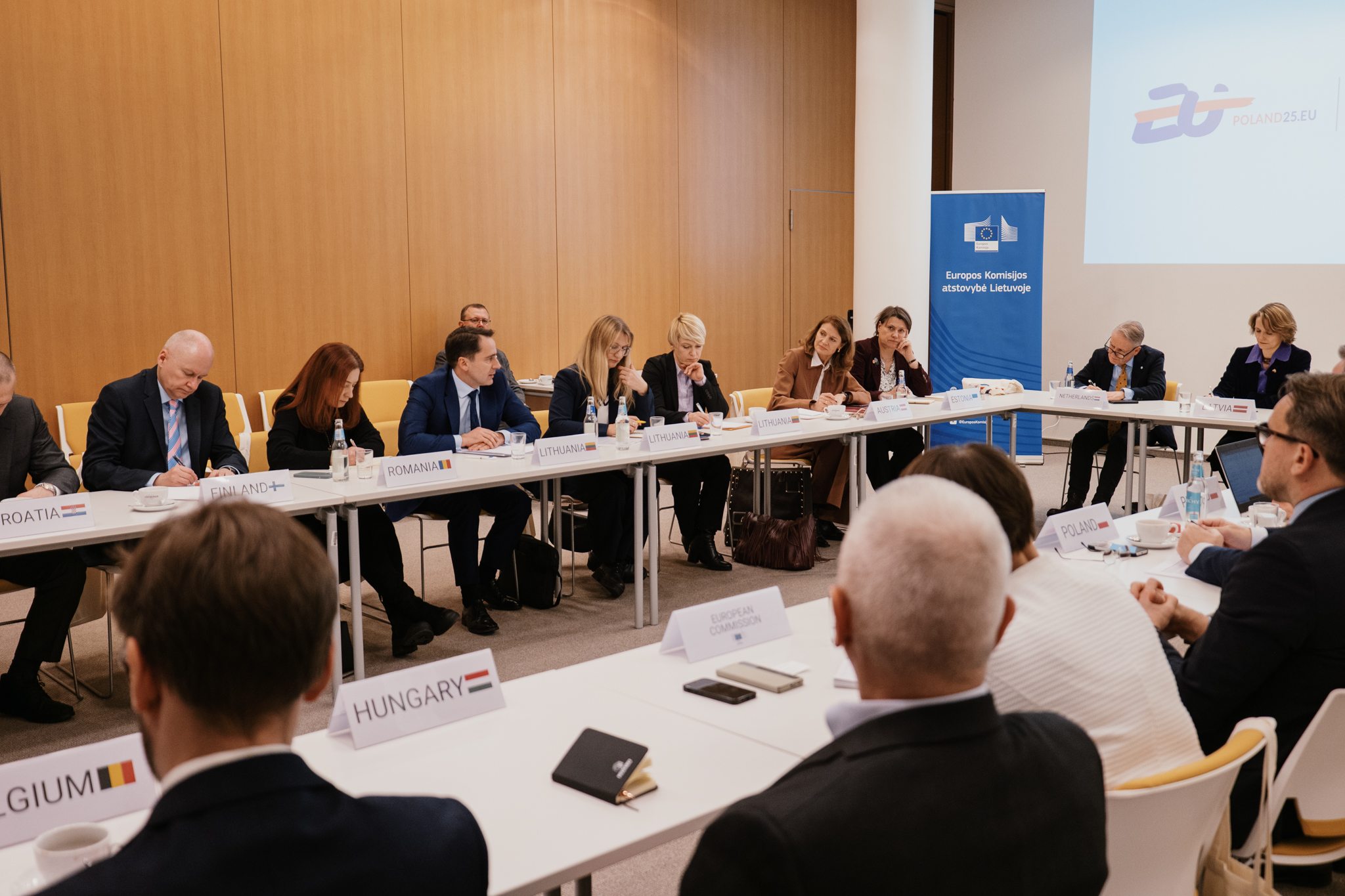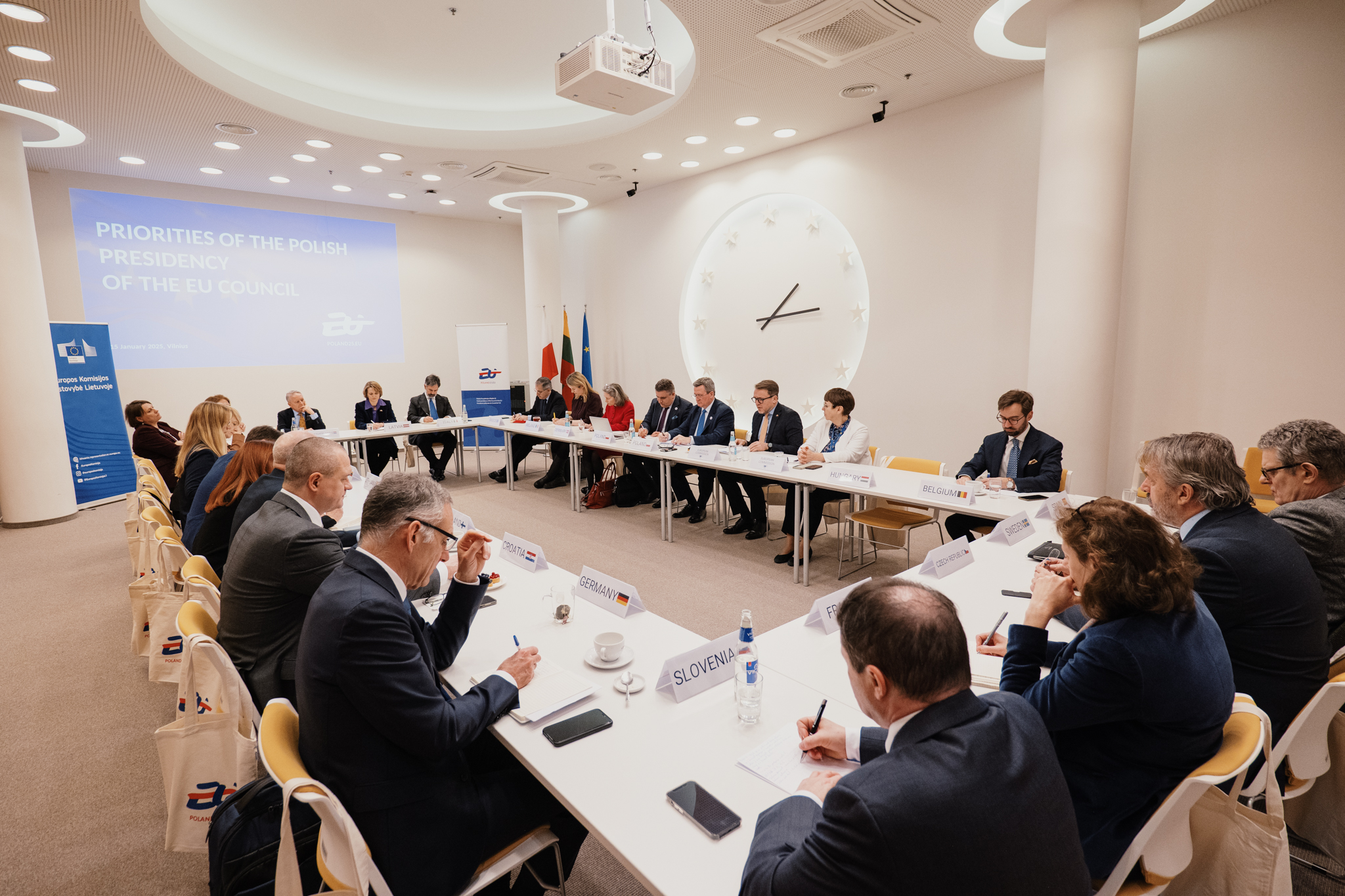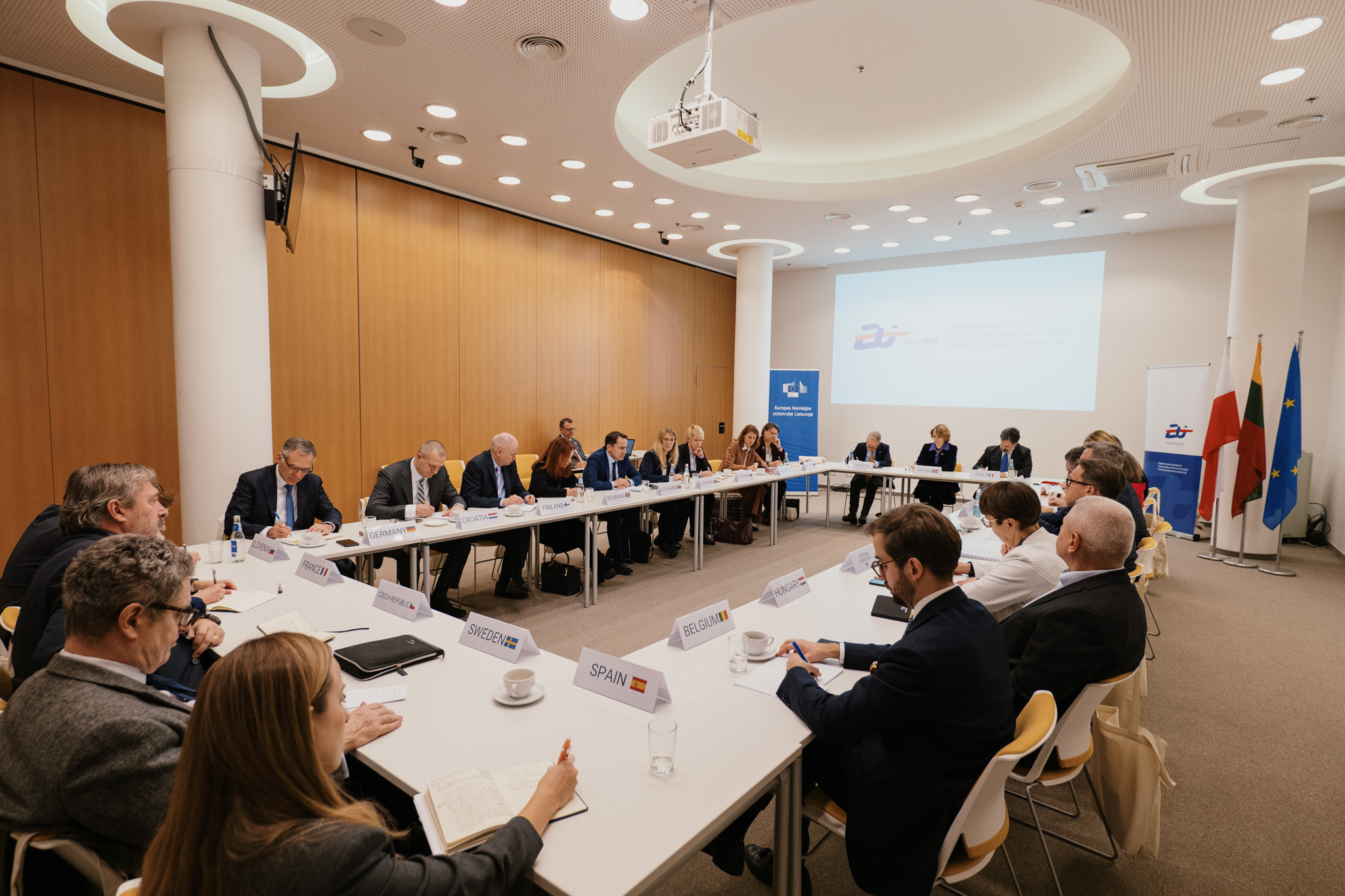 Lenkijos Respublikos įgaliotasis reikalų patikėtinis Grzegorz M. Poznański susitikime su ES valstybių narių ambasadoriais Europos Komisijos atstovybėje Lietuvoje pristatė 2025 m. sausio 1 d. prasidėjusio Lenkijos pirmininkavimo ES Tarybai prioritetus.