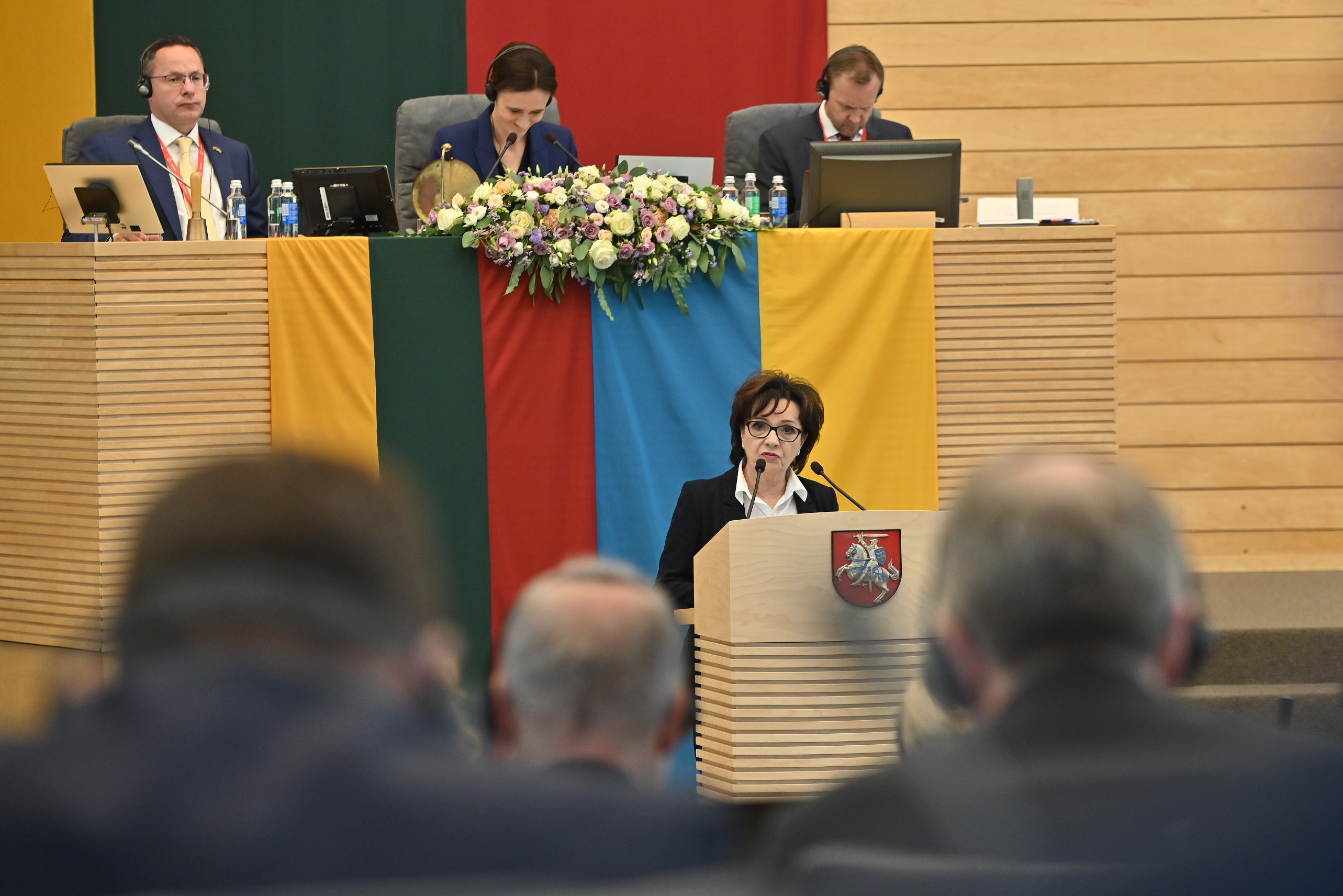 Pirmosios diskusijos metu Lenkijos Respublikos Seimo Pirmininkė pabrėžė, kad „nepaisant kai kurių lyderių pesimistinių diagnozių, išbandymų valandą NATO įrodė, kad yra patikimas, sąžiningas ir veiksmingas partneris“. „Deja, pats NATO egzistavimas nėra pakankamai veiksminga garantija ir atgrasymo priemonė, kuri sustabdytų tokius nusikaltėlius kaip V. Putinas ir neleistų pradėti žiauraus ir negailestingo karo“, – sakė ji. Seimo Pirmininkė kalbėjo apie lūkesčius, kurių tikimasi iš liepos mėnesį Vilniuje vyksiančio NATO viršūnių susitikimo – ne tik pademonstruoti nepalaužiamą Aljanso narių vienybę ir ryžtą, paspartinti NATO prisitaikymą prie naujos strateginio konkuravimo eros, bet visų pirma visapusiškai įgyvendinti praėjusių metų Madrido viršūnių susitikimo nuostatas, įskaitant NATO buvimo rytiniame flange sustiprinimą.