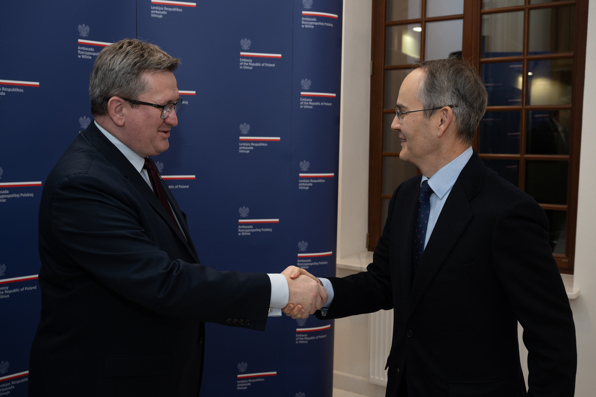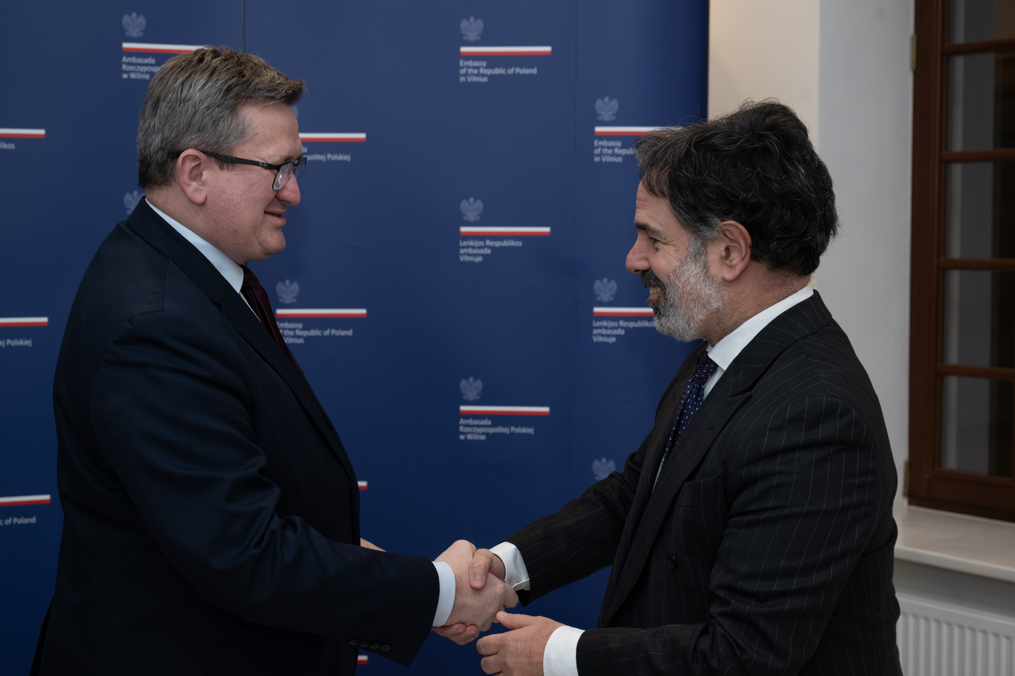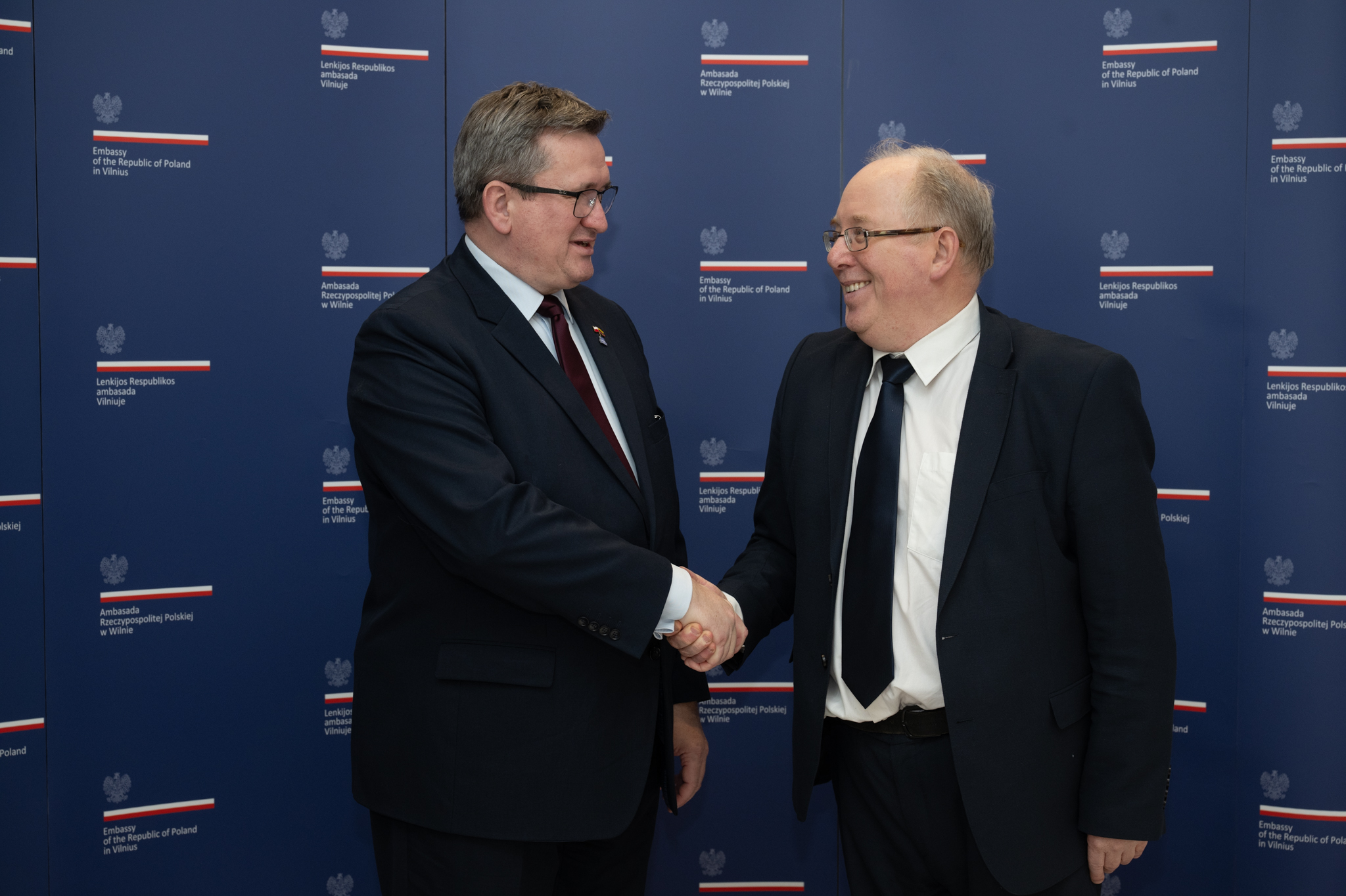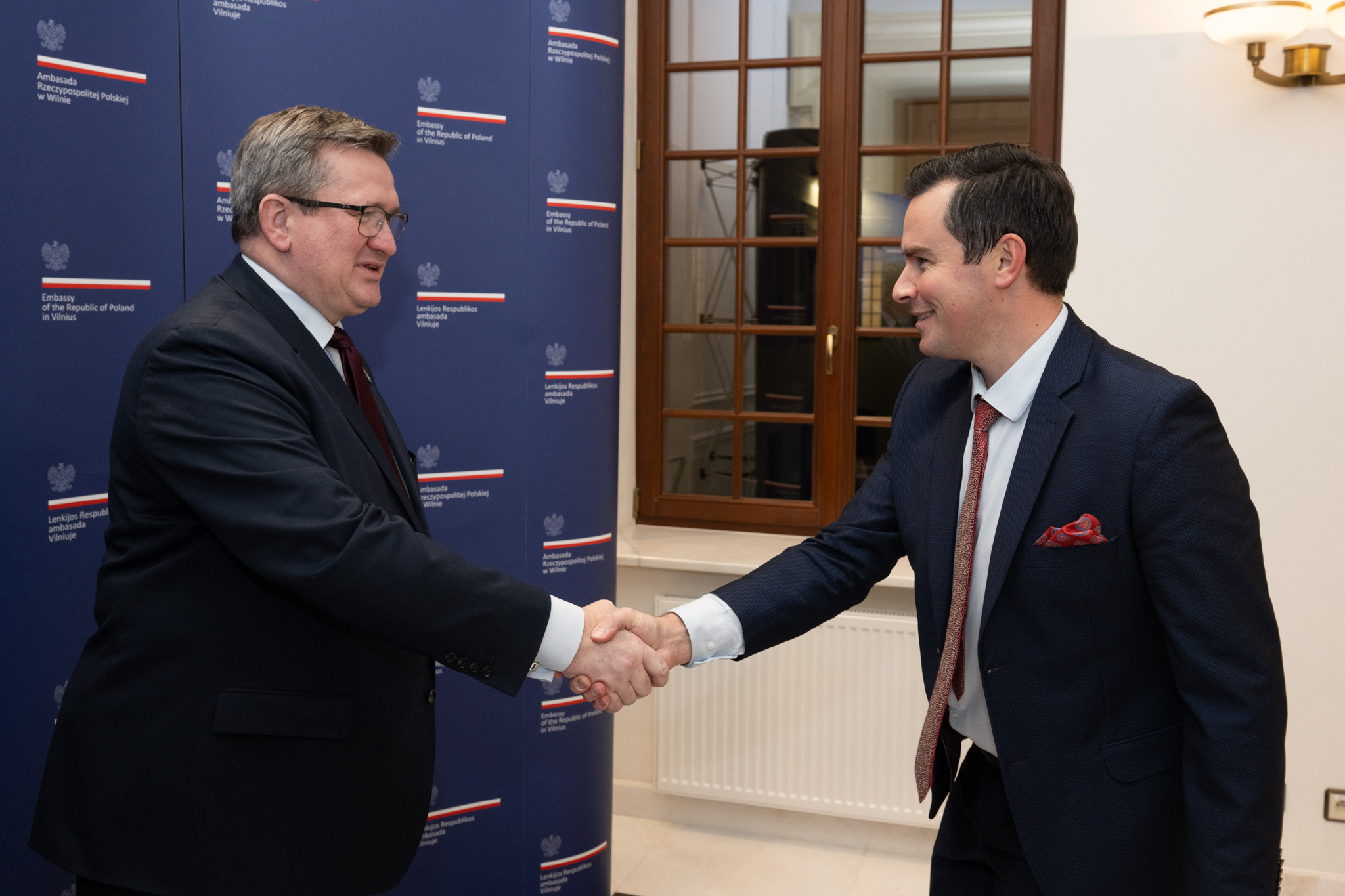 Grzegorz Poznański, chargé d’affaires RP na Litwie, powitał zgromadzonych gości, a w swoim wystąpieniu podkreślił znakomity stan stosunków gospodarczych pomiędzy Polską i Litwą. Polska pozostaje dla Litwy jednym z najważniejszych kierunków eksportu, czołowym dostawcą towarów i usług oraz jednym z głównych miejsc lokowania litewskich inwestycji. Zaznaczył, że rozwój infrastruktury transportowej, integracja rynków energetycznych, wspólne inwestycje w nowoczesne technologie oraz zwiększenie wymiany handlowej to kluczowe elementy budowania stabilności i dobrobytu w regionie. Wskazał, że takie inicjatywy nie tylko wzmacniają pozycję obu państw w Europie, ale również tworzą nowe możliwości dla przedsiębiorców, sprzyjają innowacjom i podnoszą konkurencyjność gospodarek.