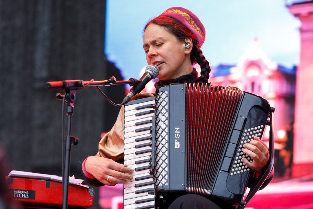 KAROLINA CICHA jest kompozytorką, wokalistką i multiinstrumentalistką – rozpoznawalną dzięki oryginalnej technice gry na kilku instrumentach jednocześnie. Jest laureatką GRAND PRIX i Nagrody Publiczności na Festiwalu Folkowym Polskiego Radia „Nowa Tradycja”. W 2015 roku znalazła się w oficjalnej selekcji na WOMEX – największym festiwalu World Music na świecie. Ze swą muzyką odwiedziła kilkadziesiąt festiwali w Europie, Azji i Ameryce. Jej płyta „Tany” uzyskała nominację do Fryderyka w kategorii Muzyka Świata. Jako specjalistka w odkrywaniu dźwiękowego i tekstowego bogactwa kultur mniejszości przywróciła ona ducha także pieśni karaimskich. W twórczy sposób zintegrowała karaimską, orientalną tradycję ludową ze swoją współczesną wrażliwością.