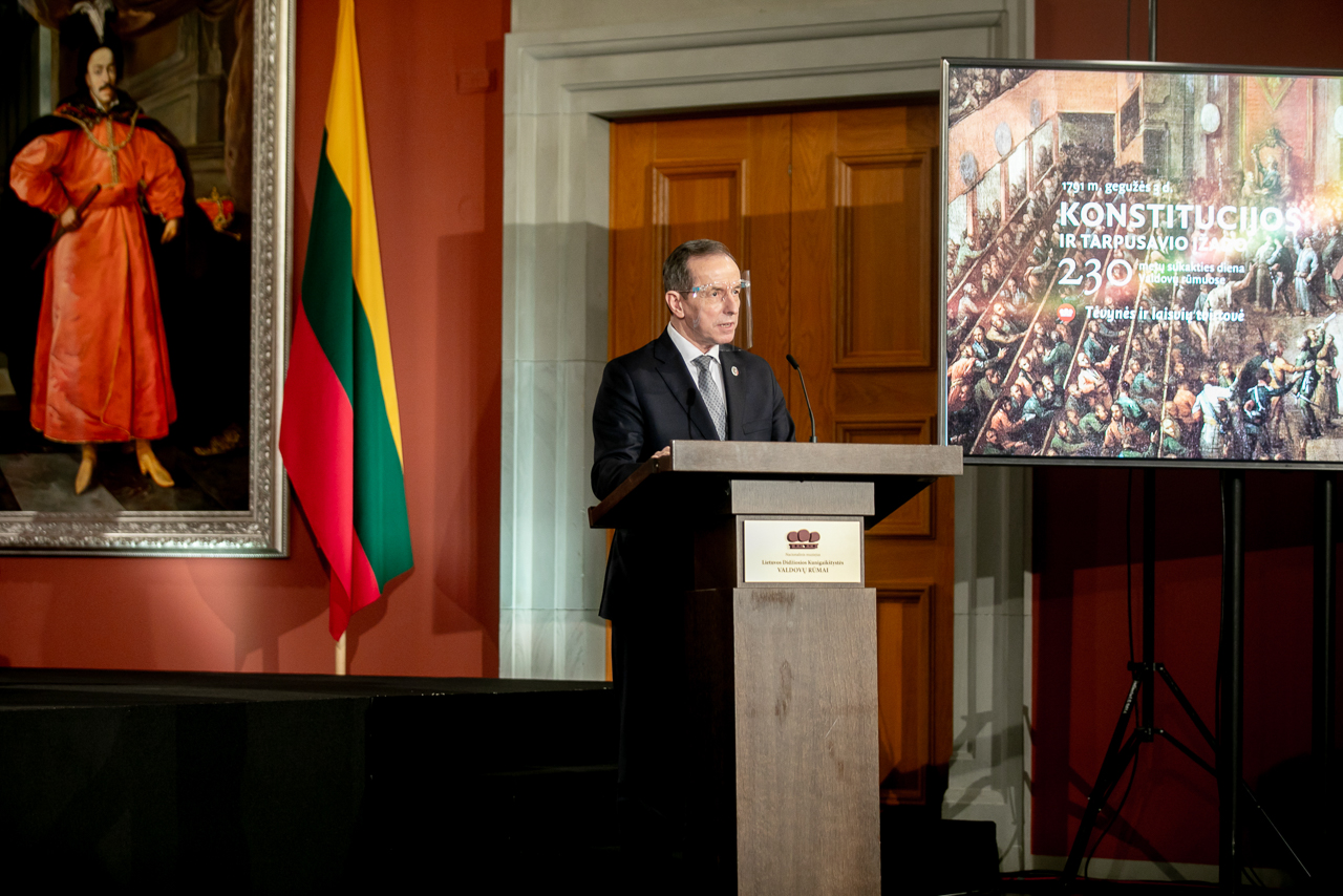 Kolejnym punktem wizyty w Wilnie był udział w dyskusji przy okrągłym stole, zorganizowanej w Pałacu Władców w związku z 230. rocznicą uchwalenia Konstytucji 3 maja oraz Zaręczenia Wzajemnego Obojga Narodów. Słowo wstępne wygłosili patroni dyskusji: Przewodnicząca Sejmu Republiki Litewskiej, Viktorija Čmilytė-Nielsen oraz profesor Tomasz Grodzki, Marszałek Senatu RP. Marszałek w swoim wystąpieniu zaznaczył: