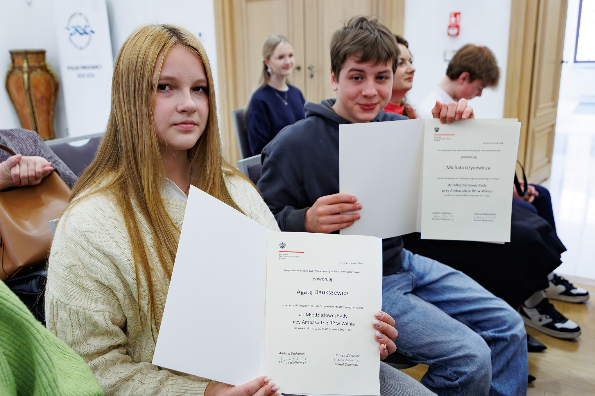 Zaproszenie do dołączenia do Rady otrzymali uczniowie wszystkich gimnazjów z polskim językiem nauczania, spośród ponad 100 zgłoszonych kandydatów wybraliśmy 21 osób, które 21 marca 2026 r. otrzymały akt powołania do Rady i rozpoczęły pierwsze spotkanie.