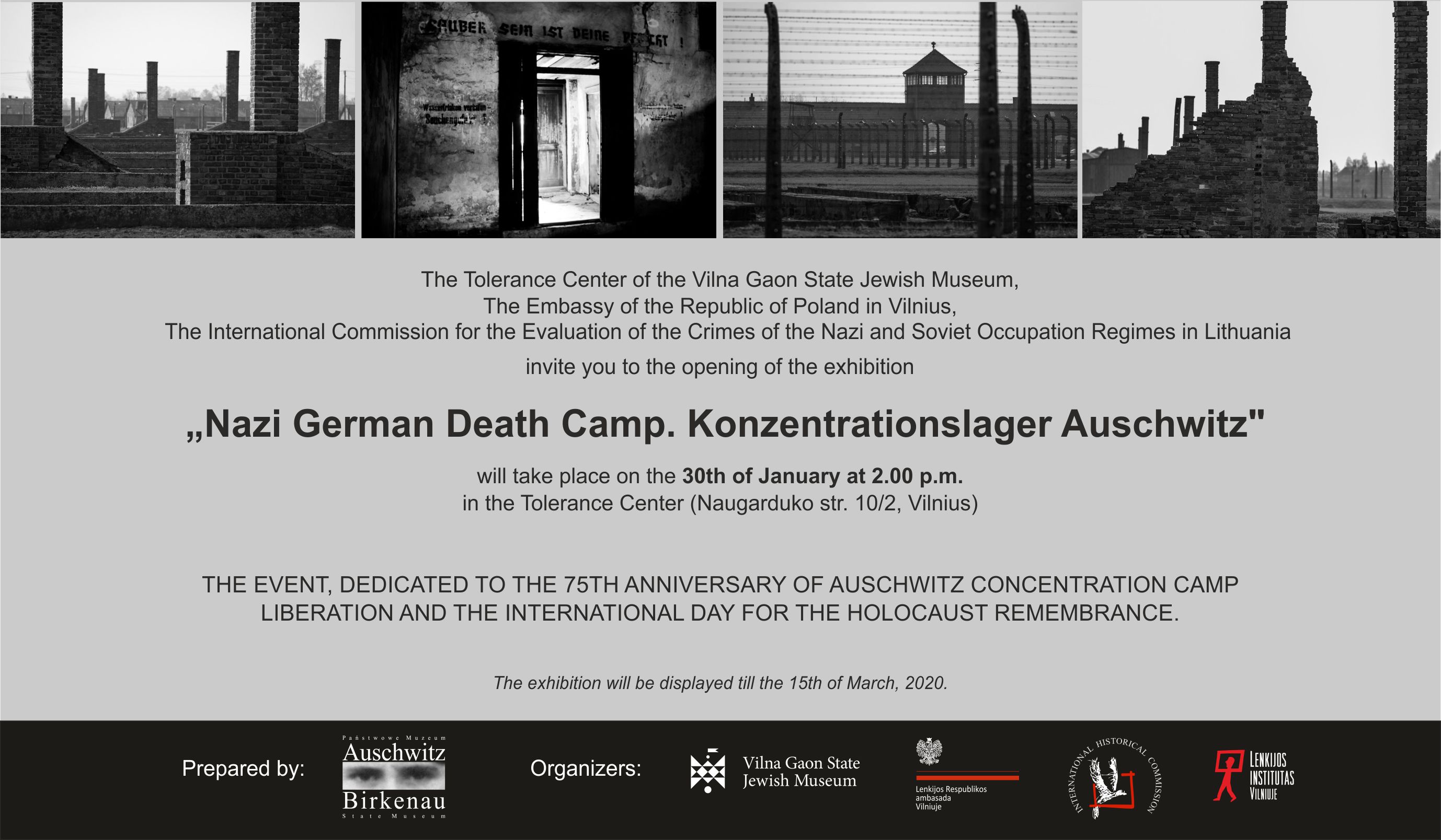 W dniu 30 stycznia br., z okazji obchodów 75. rocznicy wyzwolenia niemieckiego nazistowskiego obozu koncentracyjnego Auschwitz-Birkenau, zostanie otwarta wystawa pt. „Niemiecki Nazistowski Obóz Śmierci. Konzentrationslager Auschwitz”. Wydarzenie organizuje Ambasada RP w Wilnie we współpracy z Wileńskim Państwowym Muzeum Żydowskim im. Gaona. Wystawa została przygotowana przez Państwowe Muzeum Auschwitz-Birkenau w Oświęcimiu i przetłumaczona na język litewski.