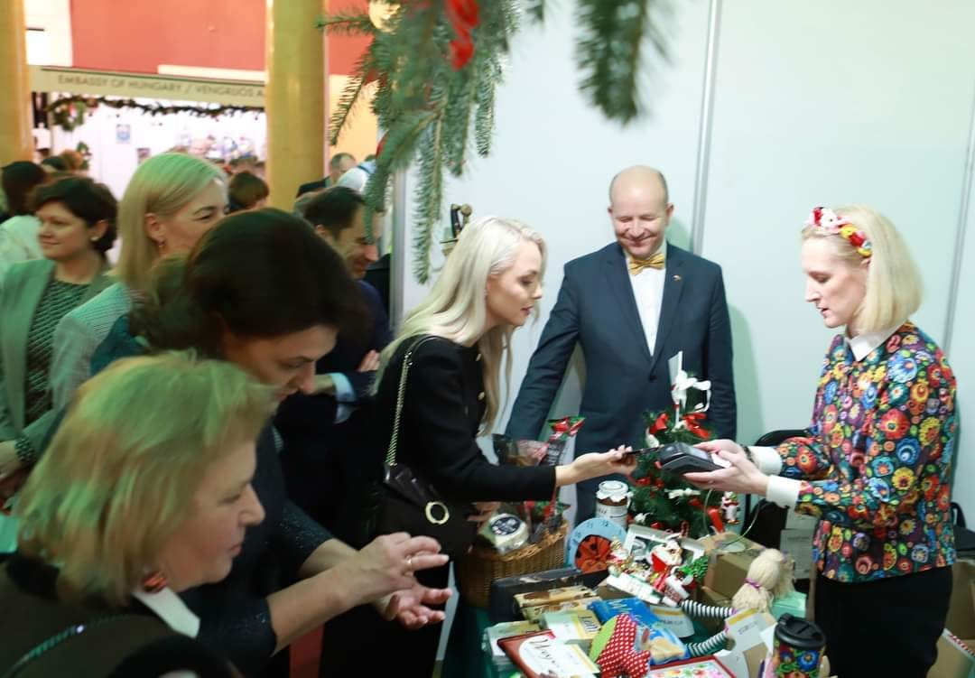 Świąteczny Kiermasz, odbywający się pod honorowym patronatem Małżonki Prezydenta Litwy Diana Nausėdienė, zorganizowało Międzynarodowe Stowarzyszenie Kobiet w Wilnie (IWAV).