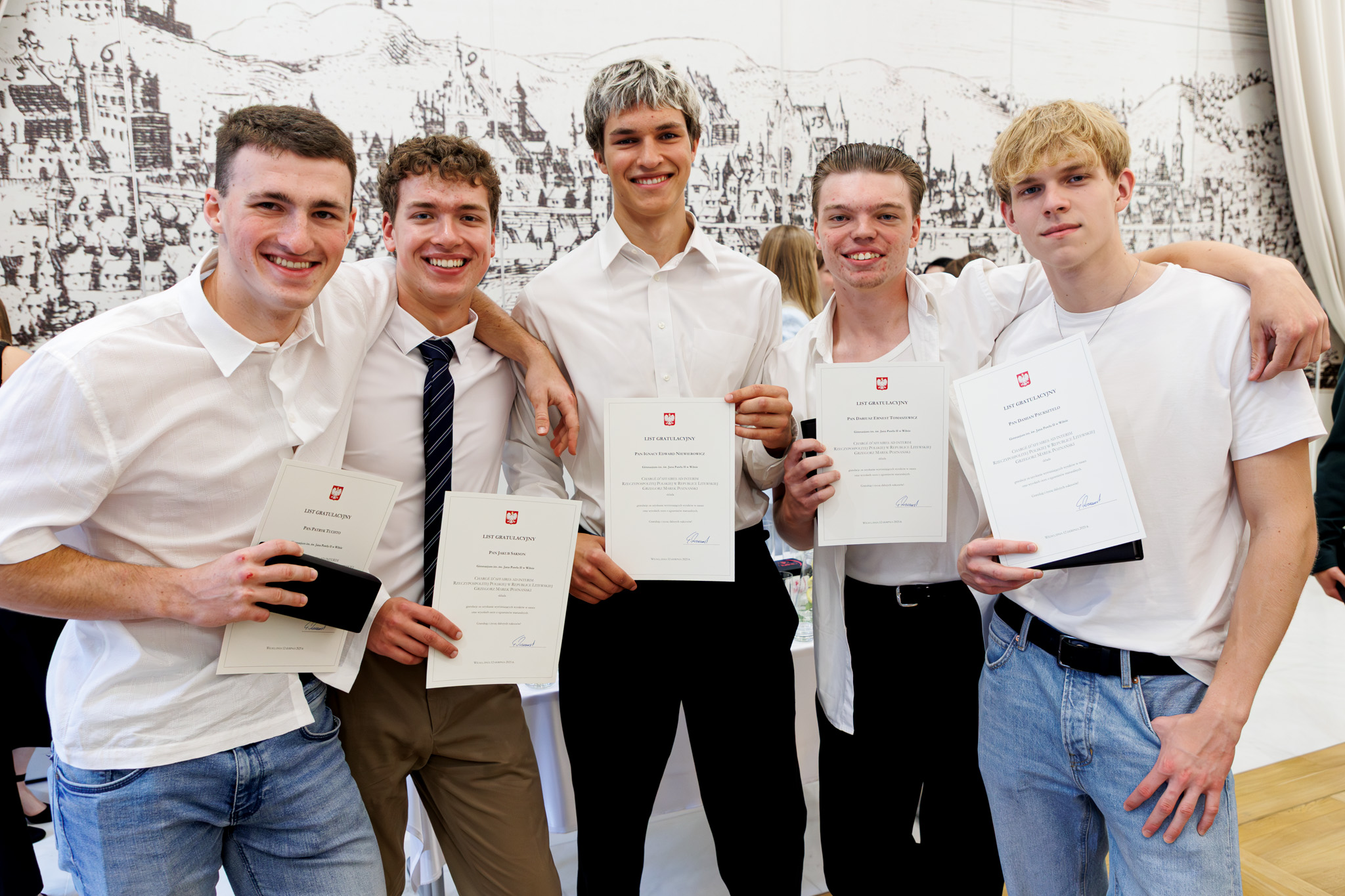 Chargé d'affaires a.i. RP Grzegorz Marek Poznański spotkał się z tegorocznymi absolwentami szkół z polskim językiem nauczania na Litwie, którzy uzyskali wysokie wyniki z egzaminów maturalnych.