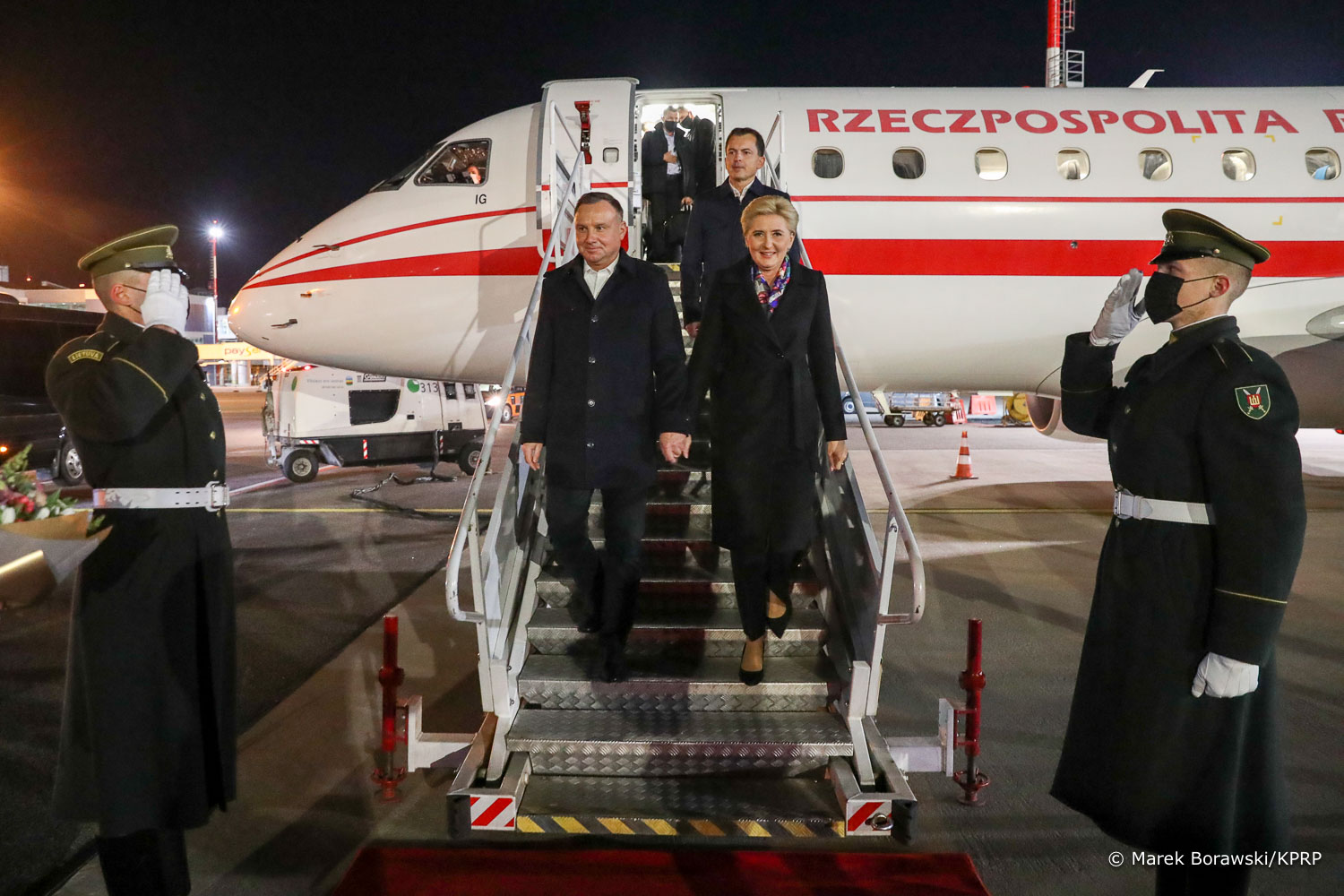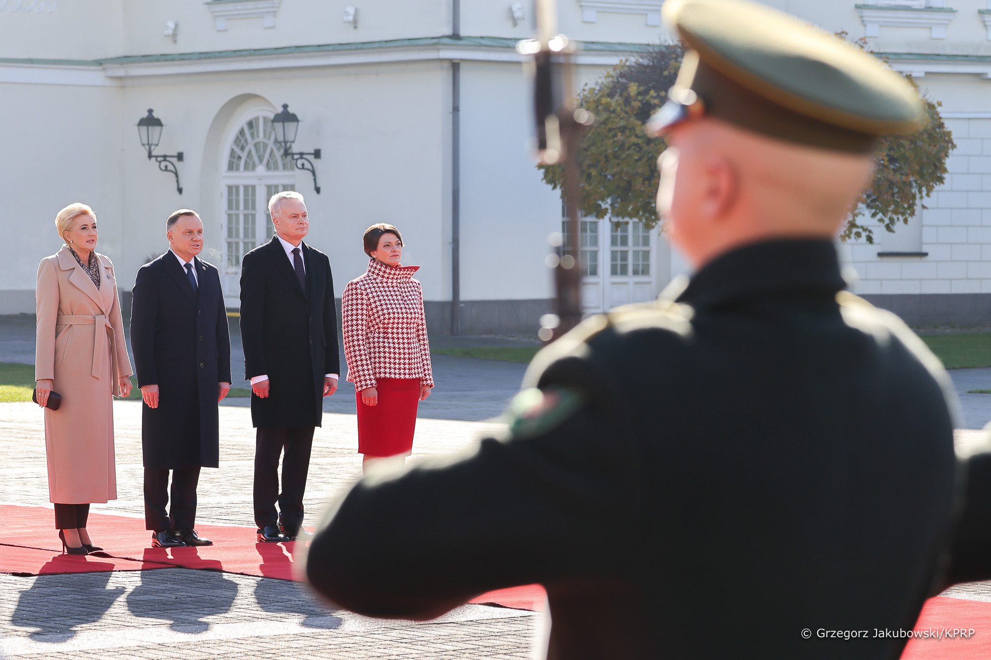Wizyta oficjalna Prezydenta RP Andrzeja Dudy i Pierwszej Damy w Republice Litewskiej rozpoczęła się w dn. 19 października od przywitania polskiej Pary Prezydenckiej przez Prezydenta Litwy Gitanasa Nausėdę z Małżonką na dziedzińcu Pałacu Prezydenckiego w Wilnie.