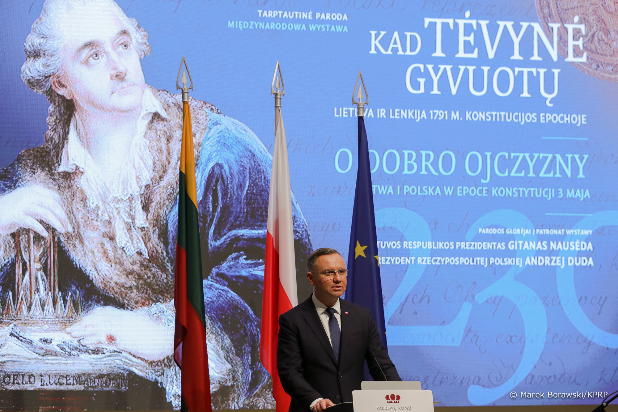 W Pałacu Wielkich Książąt Litewskich odbyła się uroczysta inauguracja XX międzynarodowej konferencji naukowej „Wielkie Księstwo Litewskie w XVIII wieku. Świt wolności ojczyzny – Konstytucja Trzeciego Maja 1791 r. Geneza. Treść. Znaczenie” i wystawy z okazji 230-lecia uchwalenia Konstytucji Trzeciego Maja i Zaręczenia Wzajemnego Obojga Narodów. Prezydenci Polski i Litwy – patroni wystawy – wygłosili na początku uroczystości przemówienia.
