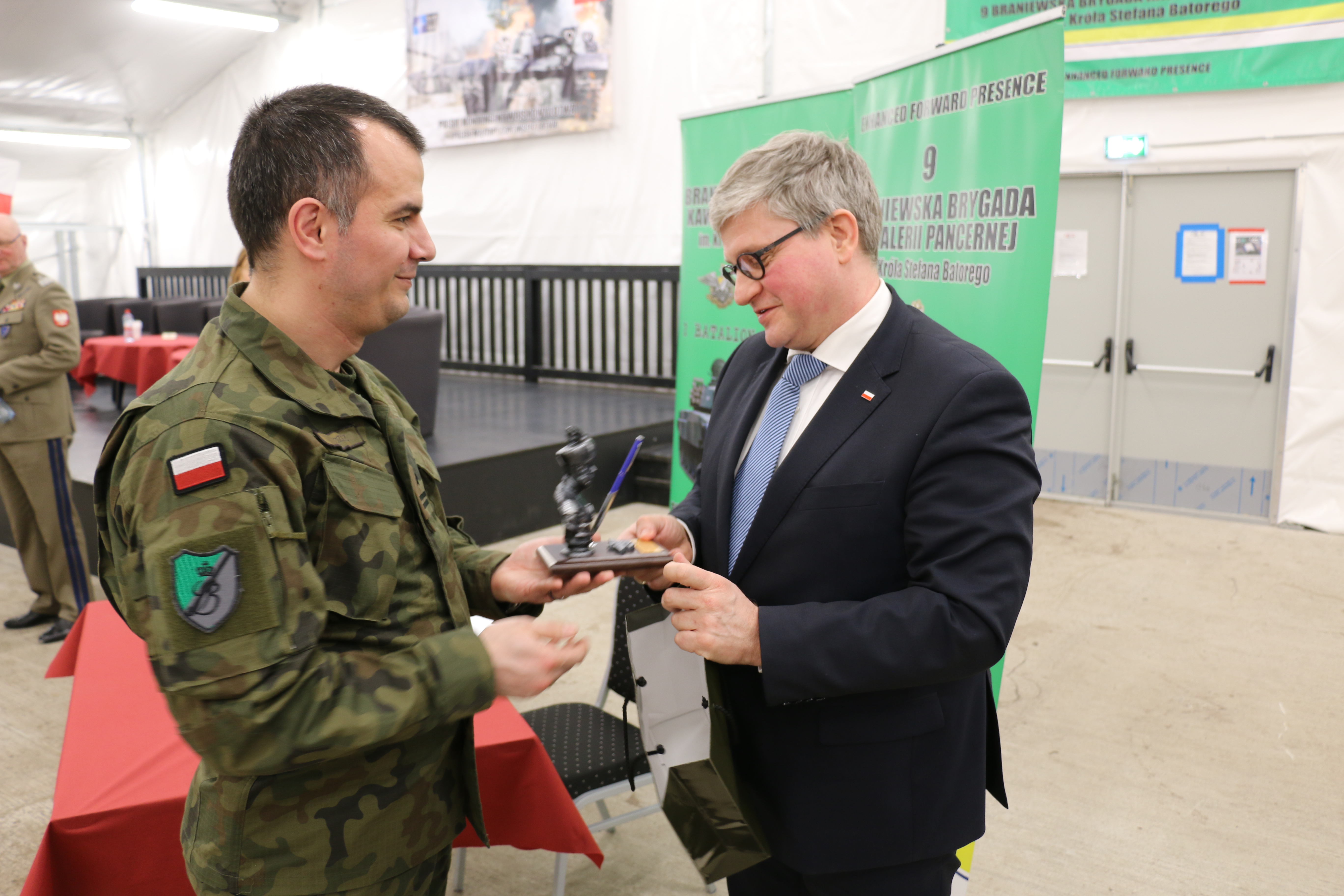 Pierwszym punktem wizyty w Republice Łotewskiej był przyjazd do Ādaži, gdzie stacjonują żołnierze Polskiego Kontyngentu Wojskowego. Minister na wstępie odbył rozmowę z dowódcą łotewskiej brygady płk. Sandrisem Gaugersem i dowódcą eFP BG ppłk. Erikiem Angellem. Następnie dowódca PKW Łotwa mjr Krzysztof Budzisz zapoznał ministra z zadaniami i życiem jednostki, a wizytę zakończyło spotkanie ze stacjonującymi w Ādaži żołnierzami. Minister Soloch w swoim wystąpieniu podkreślił znaczenie eFP w zapewnieniu bezpieczeństwa sojuszu. Głos zabrała również m.in. ambasador RP Monika Michaliszyn, która podkreśliła rolę polskich żołnierzy w kształtowaniu pozytywnego wizerunku Polski na Łotwie.
