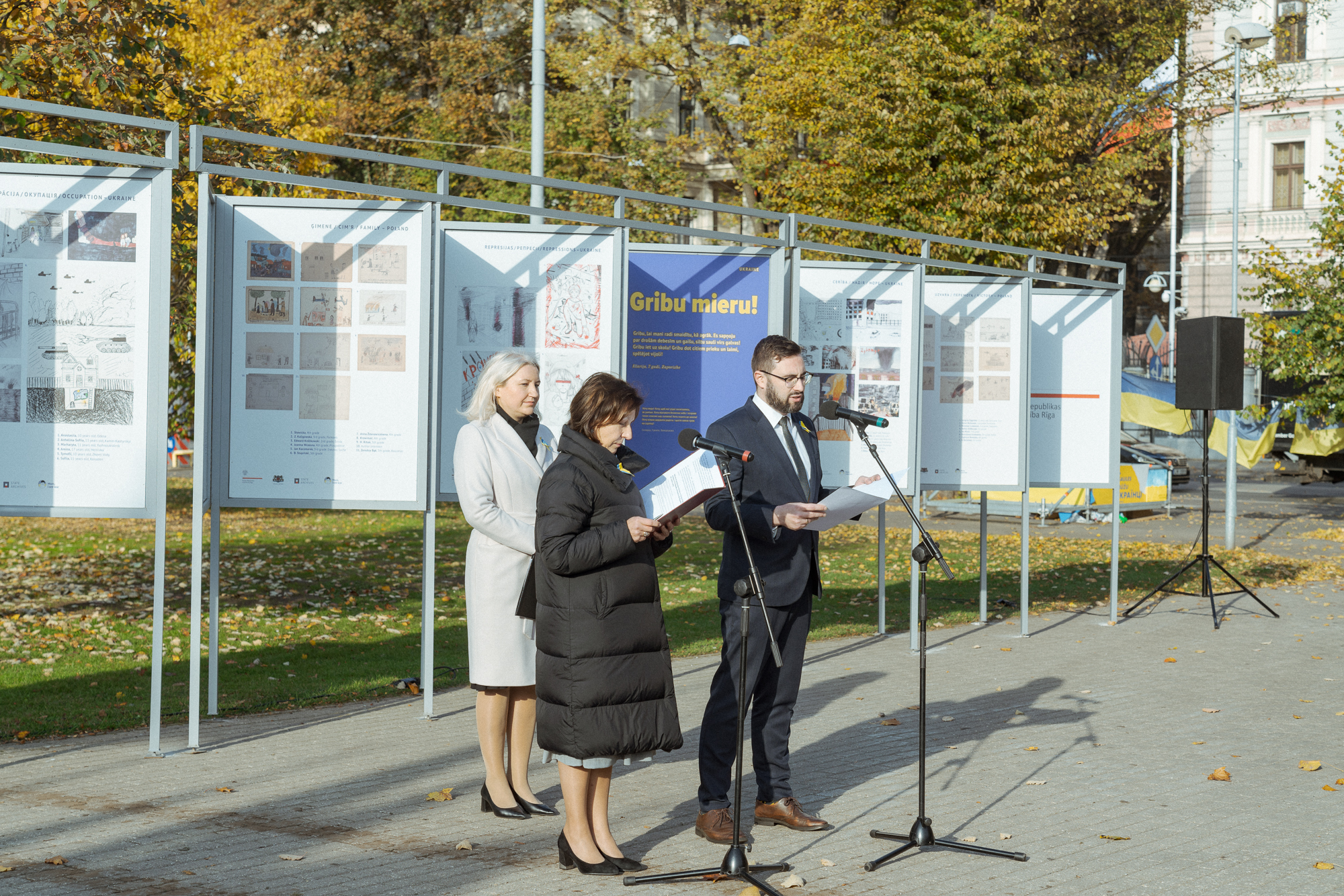 W dniu 14.10 w Rydze uroczyście została otwarta plenerowa wystawa „Mamo, ja nie chcę wojny”. Wystawę zaprezentowano na placu przed ryskim Centrum Kongresowym, naprzeciwko Ambasady Rosji. Projekt został zrealizowany przy współpracy z Ambasadą Ukrainy i władzami Rygi