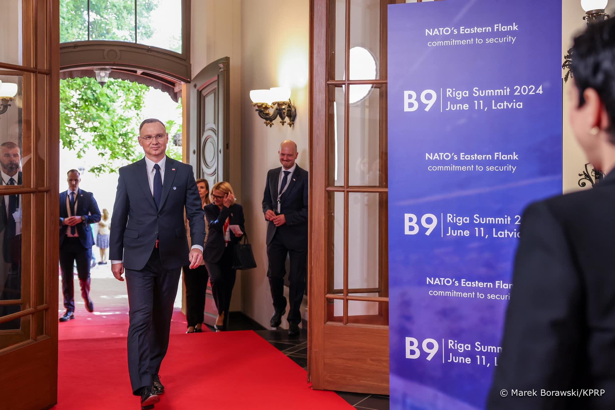 W Rydze Prezydent Andrzej Duda wziął udział w spotkaniu przywódców państw Bukaresztańskiej Dziewiątki. Tematem rozmów była sytuacja bezpieczeństwa w regionie w obliczu rosyjskiej agresji na Ukrainę, przygotowania do zbliżającego się Szczytu NATO w Waszyngtonie oraz prezydencka inicjatywa zwiększenia wydatków do 3 proc. PKB na obronność w państwach Sojuszu.