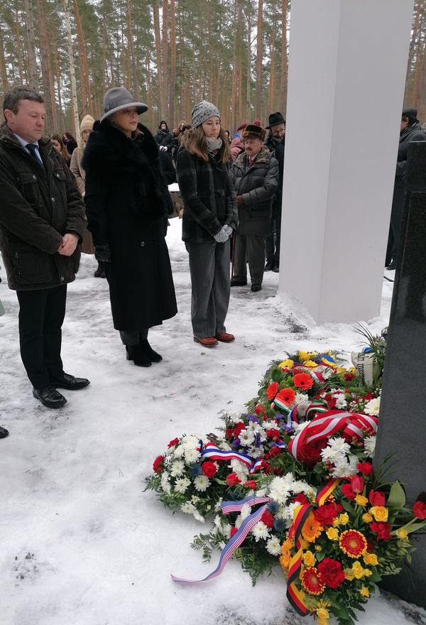 Ambasador RP na Łotwie Monika Michaliszyn uczciła pamięć ofiar Holokaustu i złożyła kwiaty w miejscu pamięci.