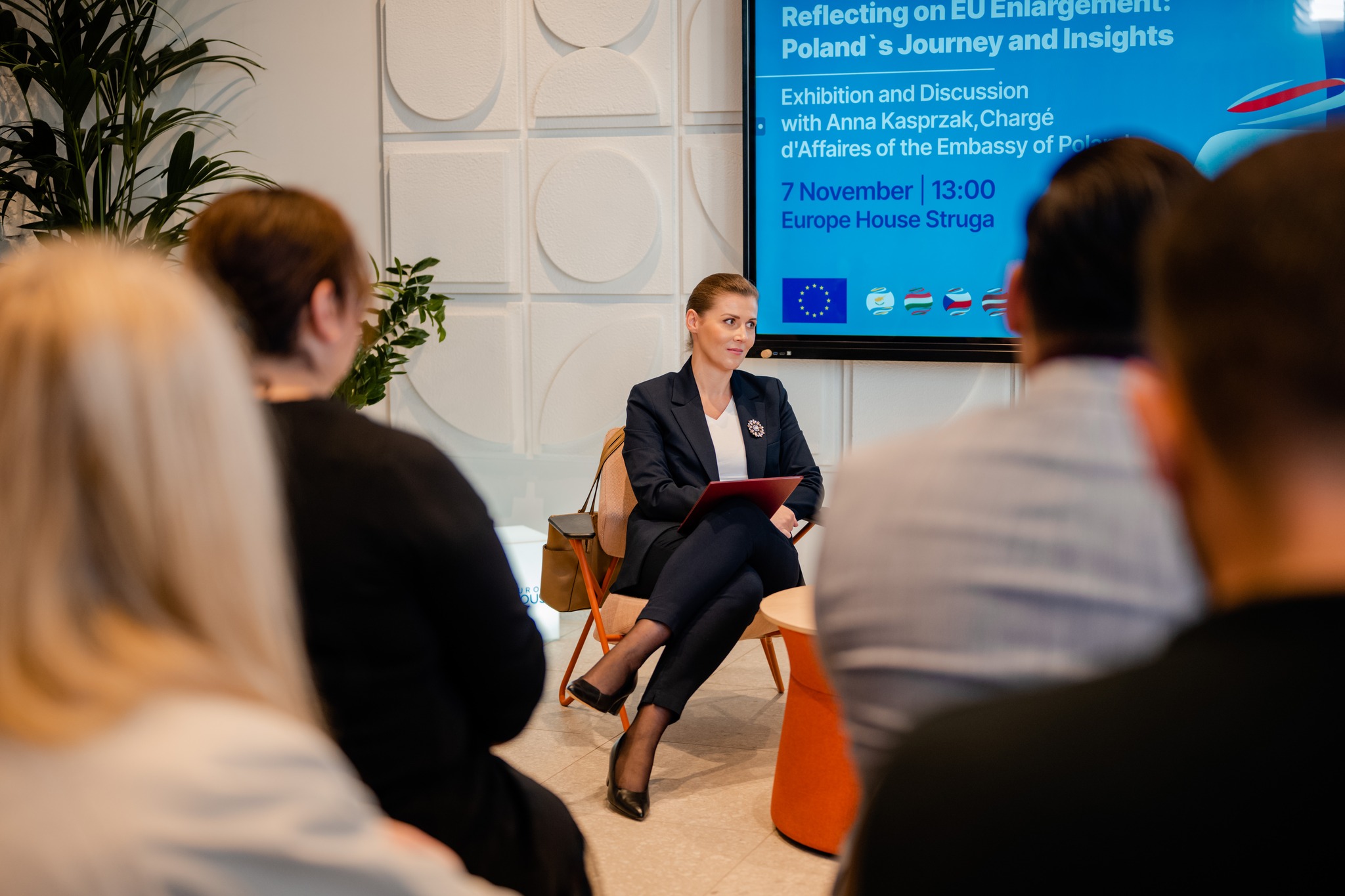 7 listopada br. w Strudze, w siedzibie tamtejszego Europe House, zostało zorganizowane spotkanie z chargé d'affaires Anną Kasprzak, która przybliżyła zgromadzonym gościom okres przedakcesyjny Polski, jej negocjacje z UE oraz korzyści płynące dla Polski z członkostwa w UE w ostatnich 20 latach. Odpowiedziała również na liczne pytania, które koncentrowały się wokół współpracy polsko-macedońskiej oraz wymiany doświadczeń w obszarze integracji europejskiej.