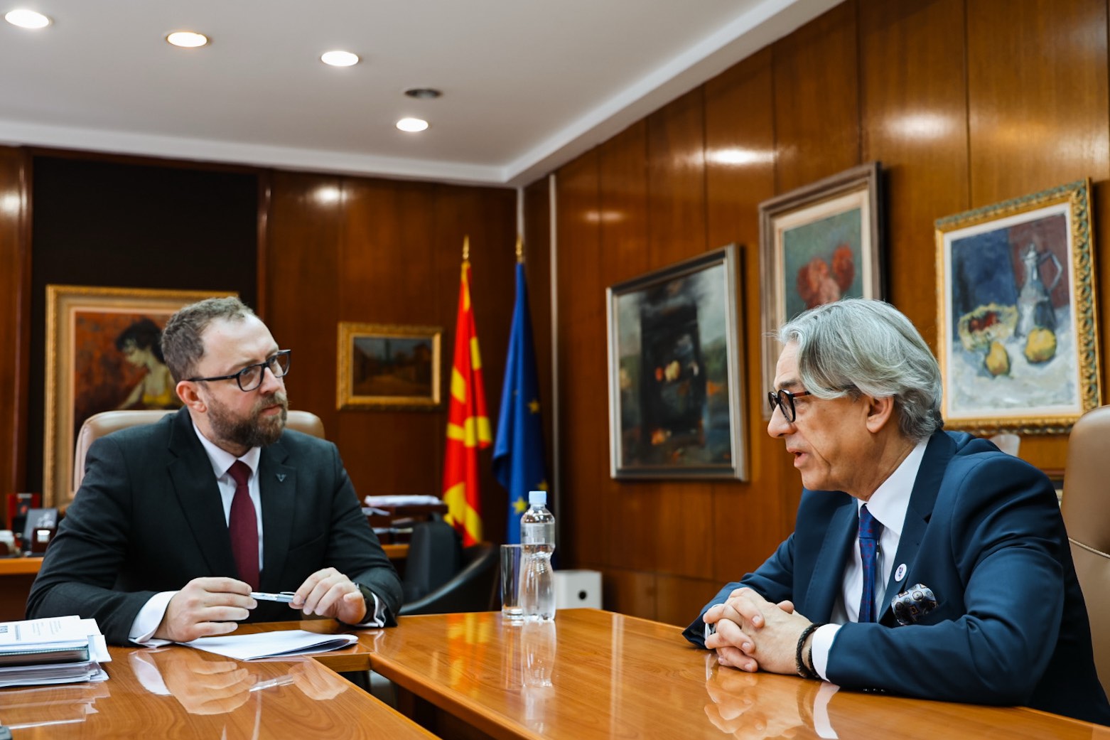 Współpraca polskich i macedońskich instytucji kultury, projekty kulturalne Ambasady RP w Skopje w 2025 r. oraz ogólne trendy w dyplomacji publicznej i kulturalnej - to główne tematy rozmowy Ministra Pełnomocnego Mariusza Brymory z Ministrem Kultury Macedonii Północnej Zoranem Ljutkovem, podczas spotkania w siedzibie ministerstwa kultury 27 lutego br.