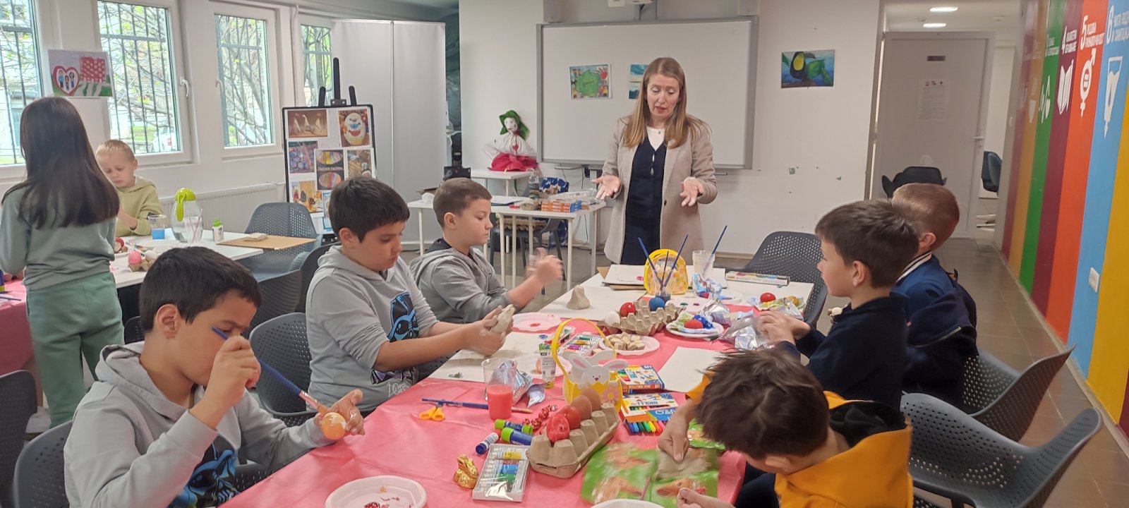 12 kwietnia bm. Ambasada RP w Skopje zorganizowała wielkanocne warsztaty plastyczne dla uczniów sobotniej szkółki j. polskiego w Skopje. Zajęcia prowadzone były przez polską artystkę Ljupkę Gałązkę – Vasilev, pedagoga plastyki w szkole średniej w Strumicy. Dzieci poprzez realizację warsztatów mogły poznać polskie tradycje wielkanocne, tworząc własnoręcznie okolicznościowe dekoracje m.in. pisanki, kartki wielkanocne ze słomy, wianki z wikliny, koszyczki oraz rękodzieła z gliny.