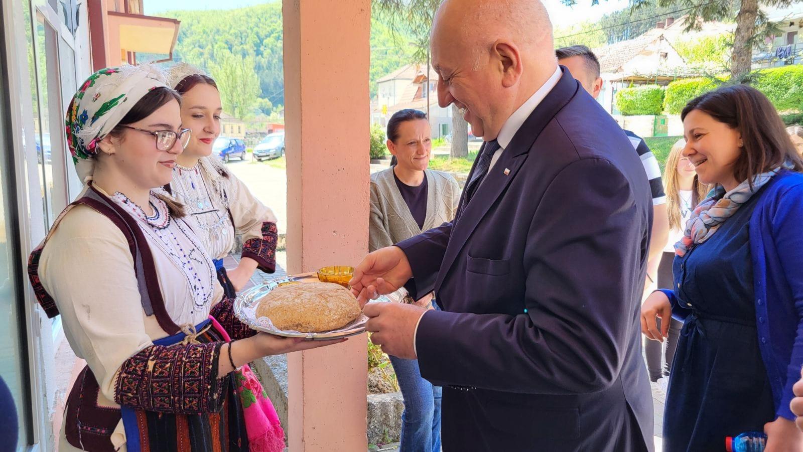 Następnie, wspólnie z burmistrzem, odwiedził gminny Dom Kultury, w którym znajduje się wystawa poświęcona polskiemu etnologowi, slawiście i socjologowi Józefowi Obrębskiemu, który w latach 1932–1933 prowadził etnosocjologiczne badania terenowe na terenie gminy. Elementem wizyty było także złożenie kwiatów pod pamiątkowym popiersiem Józefa Obrębskiego w Samokovie.