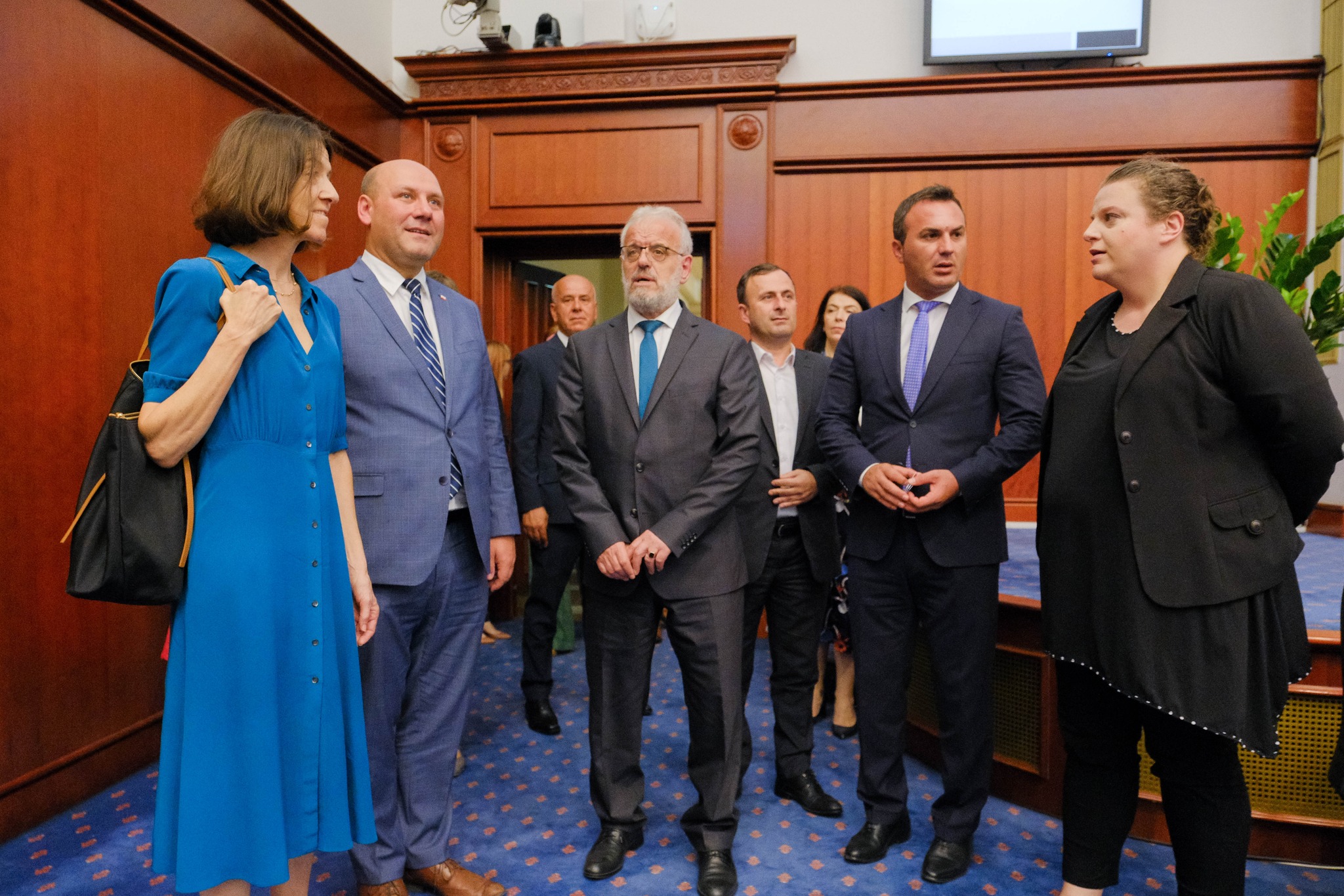 Drugiego dnia wizyty odbyło się spotkanie z Przewodniczącym Zgromadzenia Republiki Macedonii Północnej, Talatem Xhaferim oraz koordynatorami grup parlamentarnych.