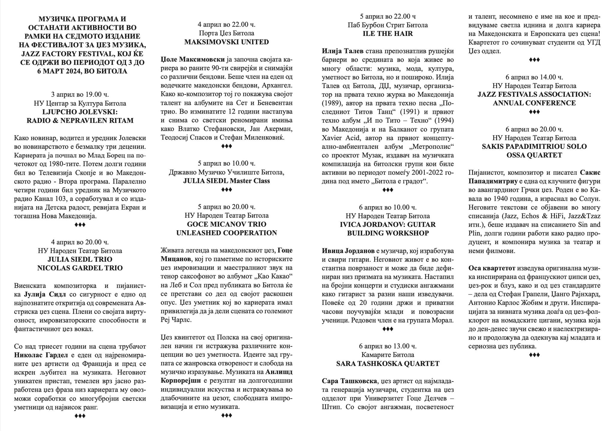 W piątek o g.20:00 w Teatrze narodowym Bitoli w ramach festiwalu Jazz Factory odbędzie się koncert polskiego zespołu jazzowego Unleashed Cooperation. Zespół zagra także w Skopje w sobotę wieczorem o g.19:30 w Audiokulturze.