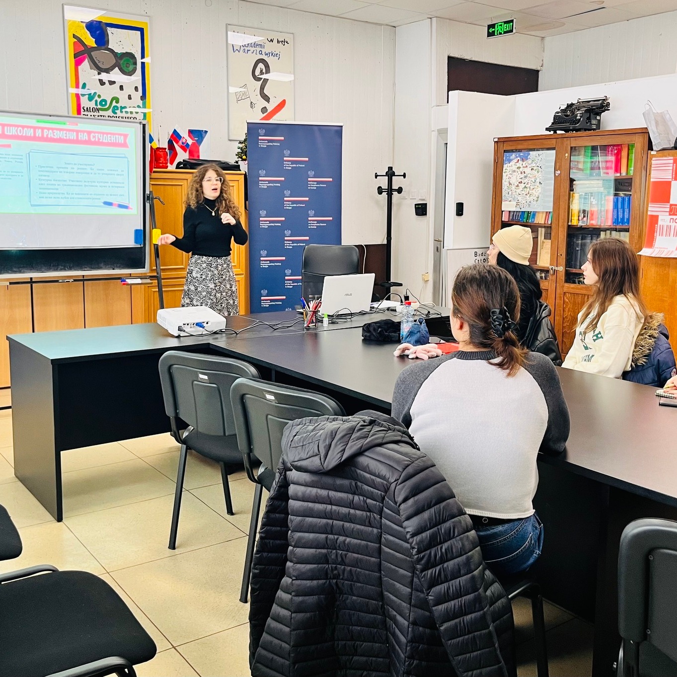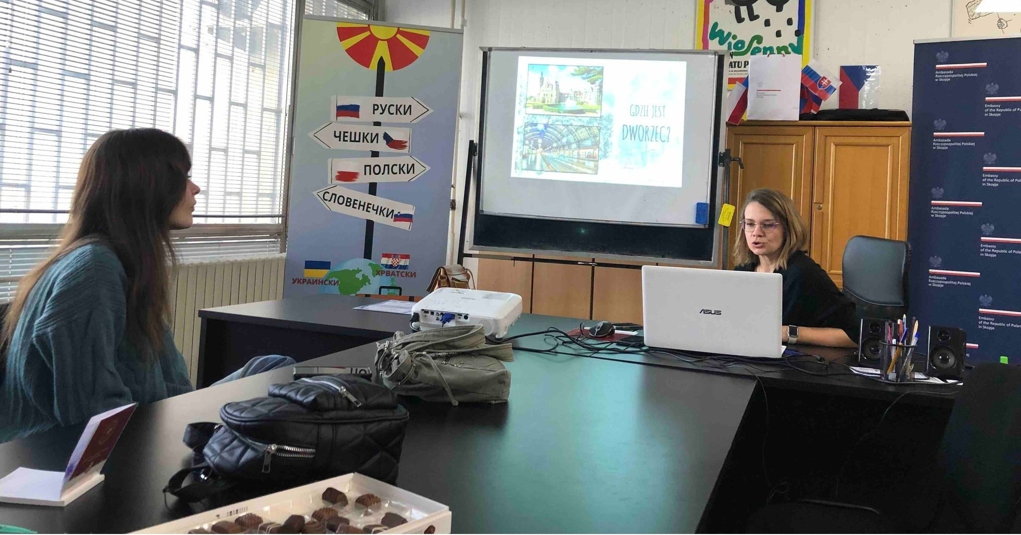 Jakie studia oferuje Wydział Filologiczny Uniwersytetu Św. Cyryla i Metodego w Skopje? Dlaczego slawistyka to ciekawy kierunek? Czy polski naprawdę jest taki trudny dla obcokrajowców? Odpowiedź na te i inne pytania przyniosła Zimowa Szkoła Slawistyczna zorganizowana na Katedrze Slawistyki 13-17 stycznia br. i skierowana do uczniów szkoł średnich, stojących przed wyborem kierunku studiów. Uczestnicy Szkoły wzięli udział w zajęciach poprowadzonych przez lektorów slawistyki. Zajęcia o Polsce i polskim języku poprowadził lektorka Natalia Łukomska. Na zakończenie projektu uczniowie otrzymali gadżety przygotowane przez Ambasadę RP w Skopje, ze specjalnie zaprojektowanym przez Panią Natalię logo, które prezentujemy poniżej.