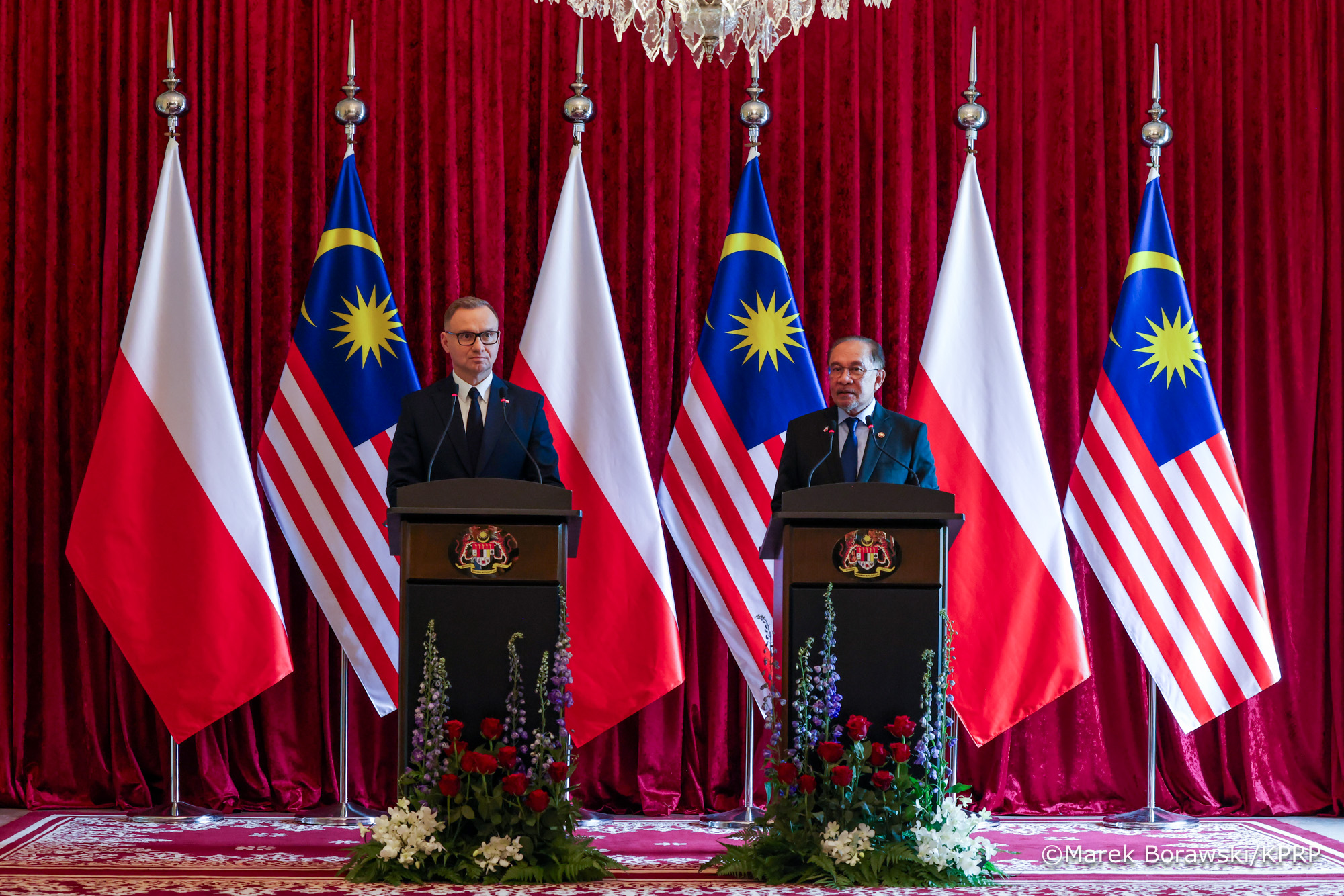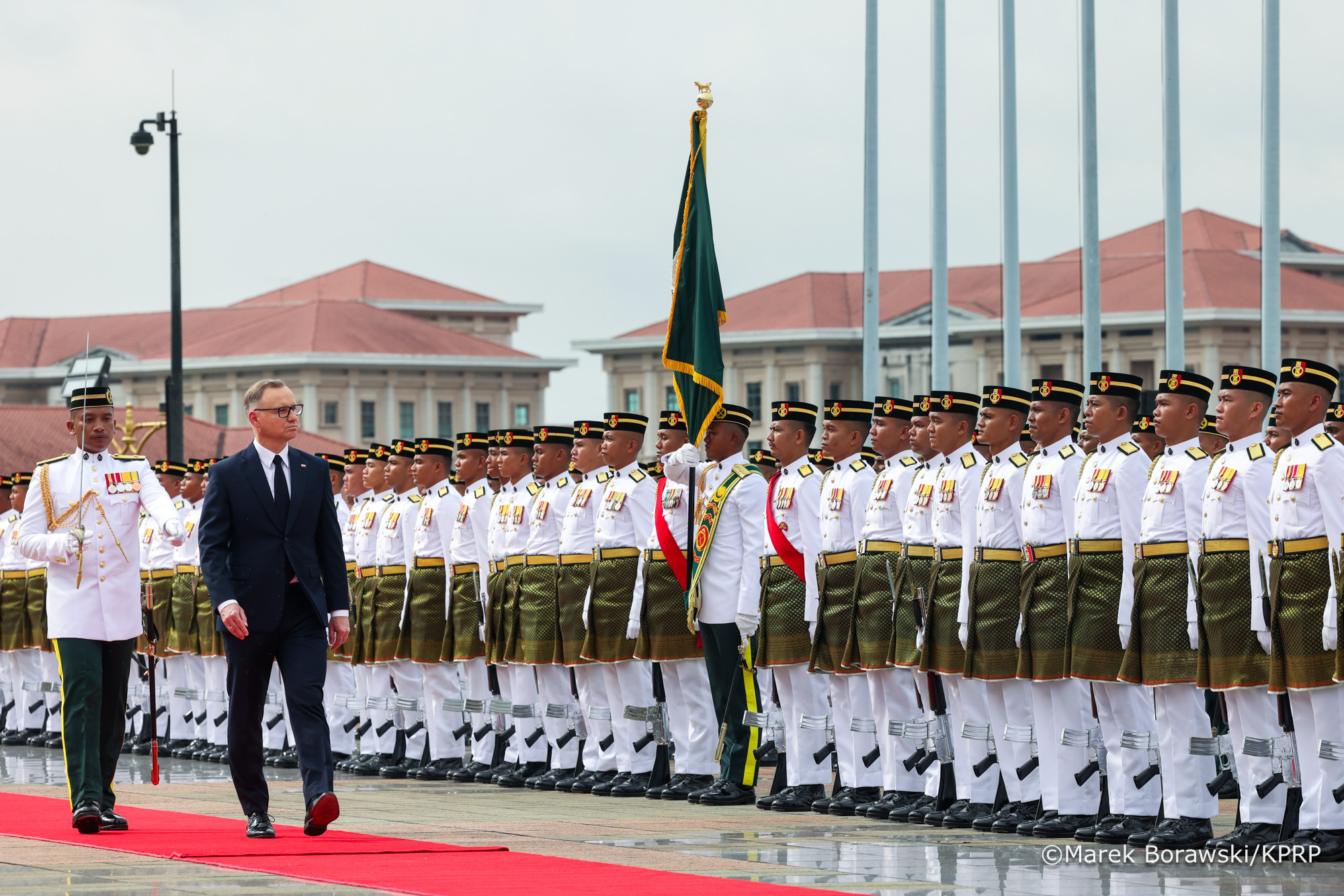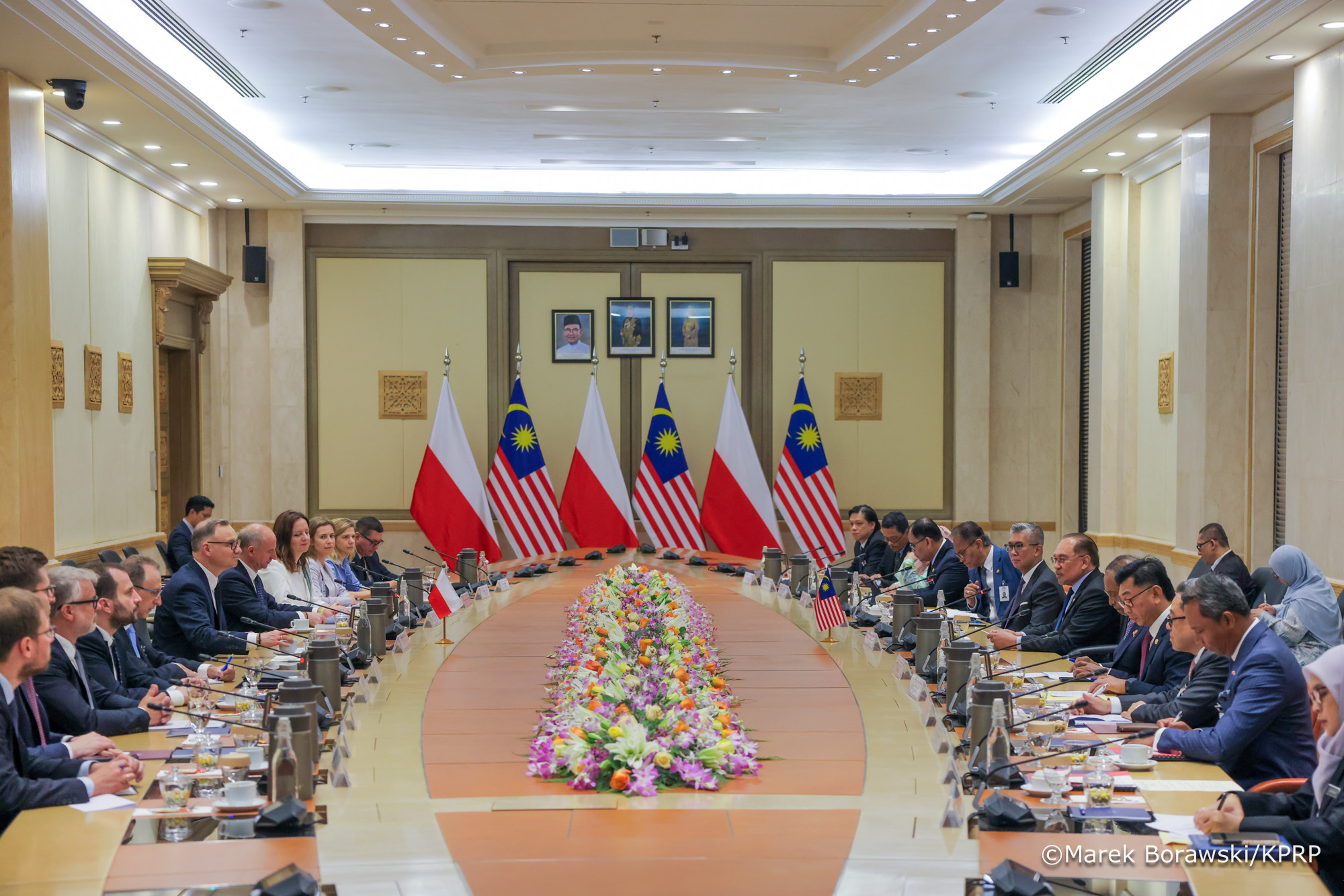 Following the ceremony, the leaders held a one-on-one discussion and then presided over a plenary session of both delegations. During the talks, they discussed bilateral cooperation in the fields of economy, defence and new technologies, including opportunities for greater access to the Malaysian market for Polish food products. They also addressed the most important current regional and international issues. Subsequently, both leaders took part in a press conference for the Polish and Malaysian media.
