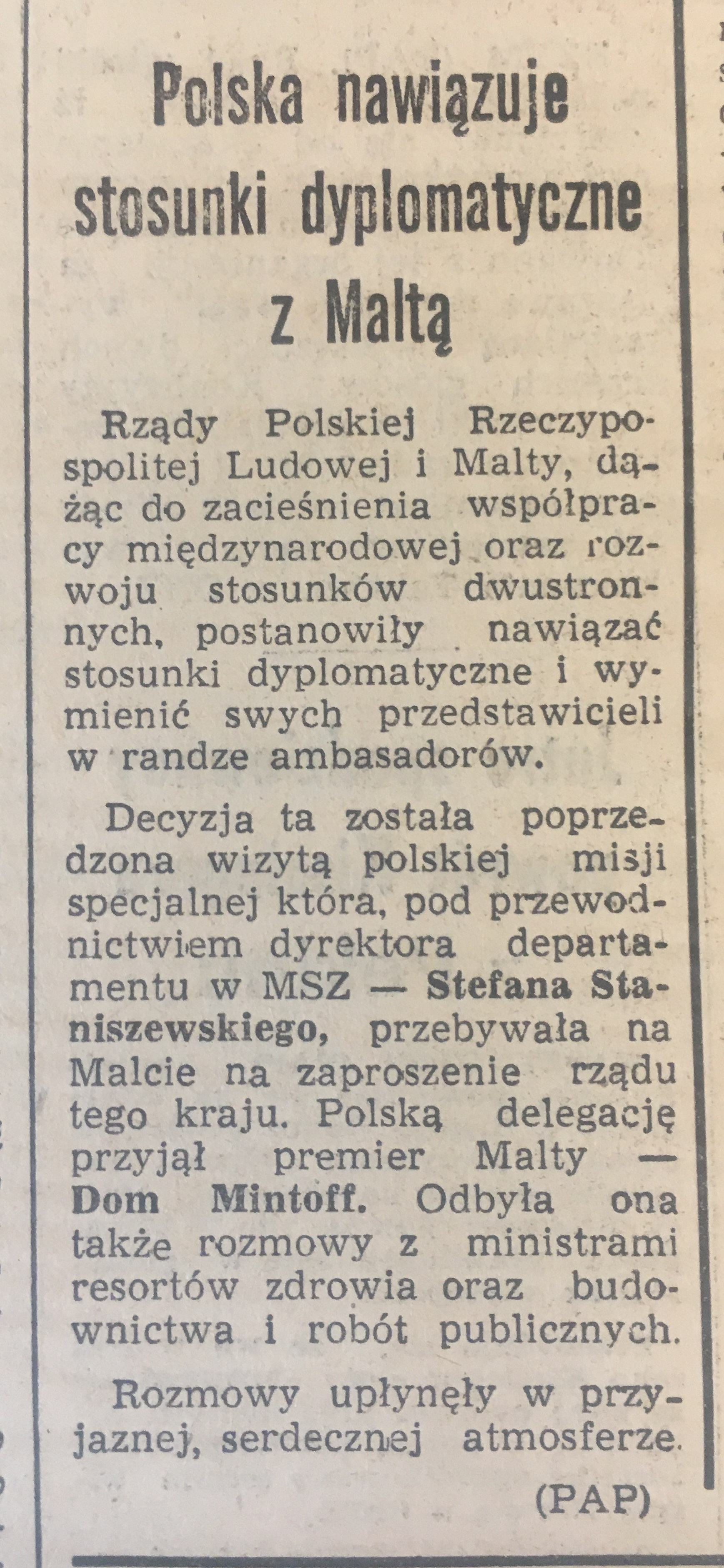 on October 23rd, 1971 - Poland and Malta established diplomatic relations at the embassy level. This took place as a result of the announcement of a joint communiqué by representatives of both countries