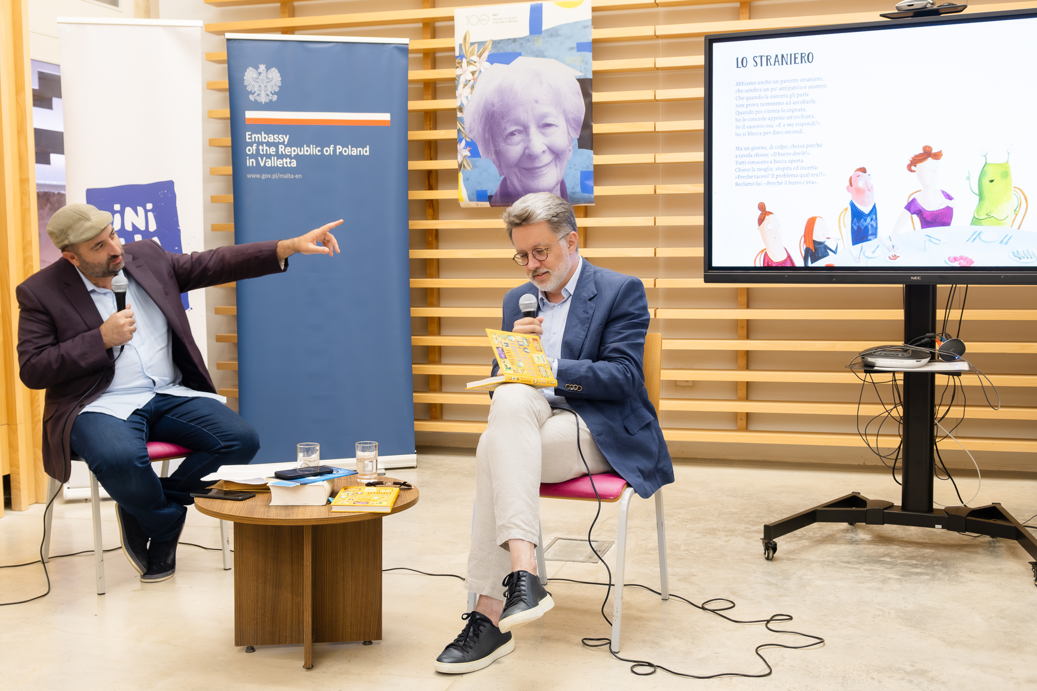 On 22nd of August at the Valletta Design Cluster was held a meeting with Michał Rusinek, Wisława Szymborska's personal secretary, president of the Wisława Szymborska Foundation, author of books for children and adults, professor at the Jagiellonian University. The event was organised within the Malta Mediterranean Literature Festival.