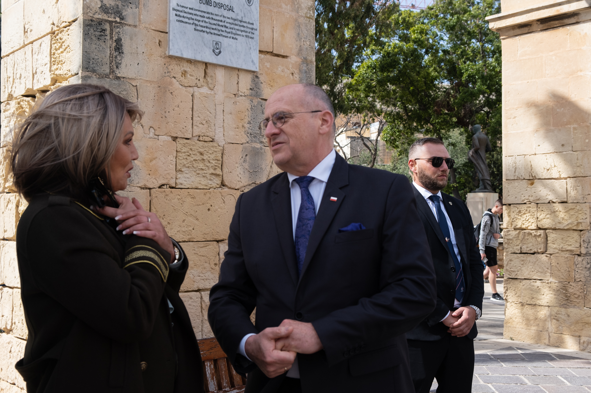 Once the political talks were over, the head of Polish diplomacy laid a wreath of flowers under the plaque commemorating 13 Polish sailors of the destroyer escort “ORP Kujawiak” which sank off the coast of Malta during the Second World War.