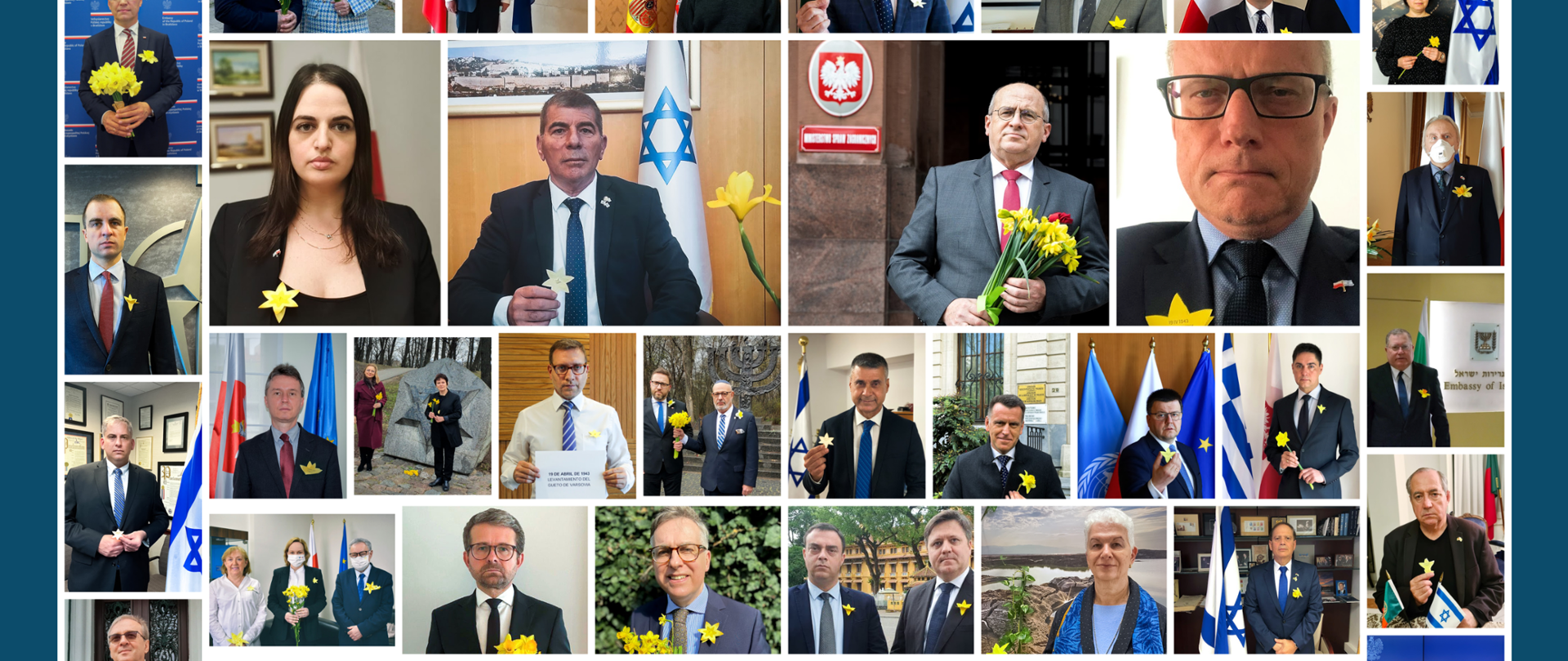 To commemorate the anniversary of the uprising, ambassadors posed for photos holding daffodils—symbols of the uprising that erupted on this day 78 years ago. For many years, Marek Edelman (1919–2009), the last surviving commander of the Warsaw Ghetto Uprising, received a bouquet of yellow daffodils from an anonymous person on the anniversary of the revolt. Each year he laid the flowers at the Monument to the Ghetto Heroes in Warsaw. Now in its ninth year, the Daffodil Campaign was created and is led by the POLIN Museum of the History of Polish Jews to uphold this tradition and, more importantly, to sustain the memory of the heroes and heroines of the uprising.