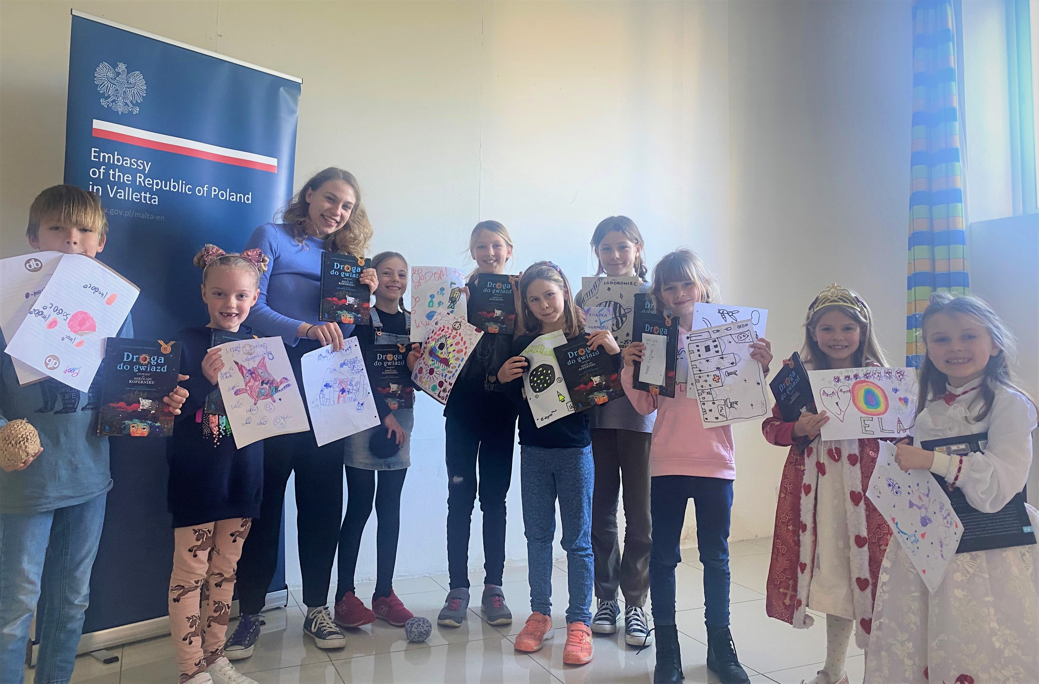 Otwierając wydarzenie, razem z dziećmi porozmawialiśmy o rocznicy urodzin Mikołaja Kopernika i obchodach Dnia Języka Ojczystego. Warsztaty poprowadziła p. Zofia Stelmaszczyk - absolwentka wydziału teatralnego Uniwersytetu Maltańskiego, edukatorka dziecięcych grup teatralnych i wokalnych na Malcie. Uczestnicy warsztatów m.in. brali udział w integracyjnych zabawach językowych i dramowych, stworzyli swoje planety, wykreowali ich mieszkańców oraz zaprezentowali je biorącym w zajęciach dzieciom. Na zakończenie zajęć wszyscy uczestnicy otrzymali upominek w postaci książki pt. "Droga do gwiazd. Opowieść o Mikołaju Koperniku" K. i P. Ziemnickich. Warsztaty zostały przeprowadzone w pomieszczeniach NSTS Msida Campus Hostel.