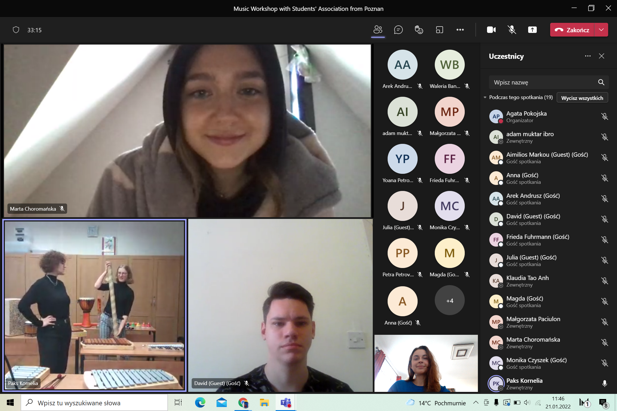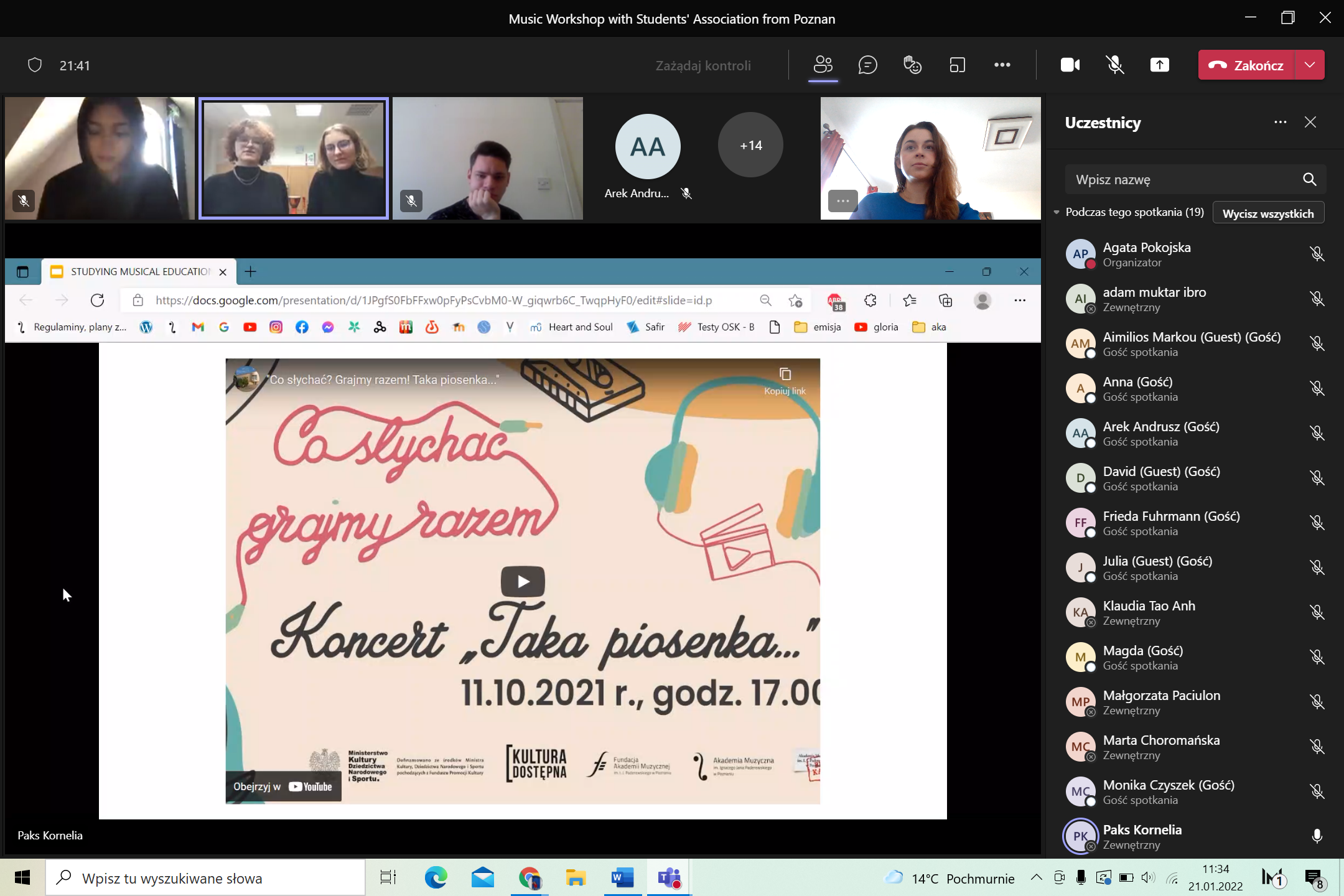 1/ przedstawiono prezentację dot. Poznania, Uniwersytetu A. Mickiewicza, Akademii Muzycznej im. J.I. Paderewskiego oraz przeprowadzono muzyczny warsztat przygotowany przez członków Studenckiego Koła Naukowego Edukacji Muzycznej w Poznaniu;