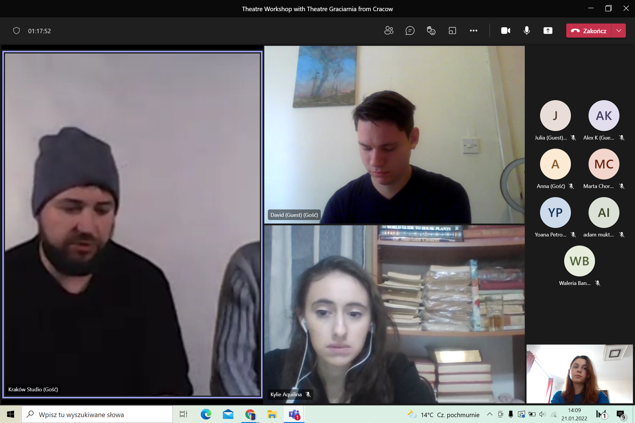 2/ przeprowadzono warsztat teatralny przygotowany przez założycieli Teatru „Graciarnia” zrzeszającego studentów uczelni krakowskich. Podczas spotkania, oprócz wykonywania kreatywnych ćwiczeń aktorskich, uczestnicy mogli zapoznać się z informacjami dot. wybitnych Polaków związanych z teatrem, np. Jerzym Grotowskim czy Tadeuszem Kantorem;