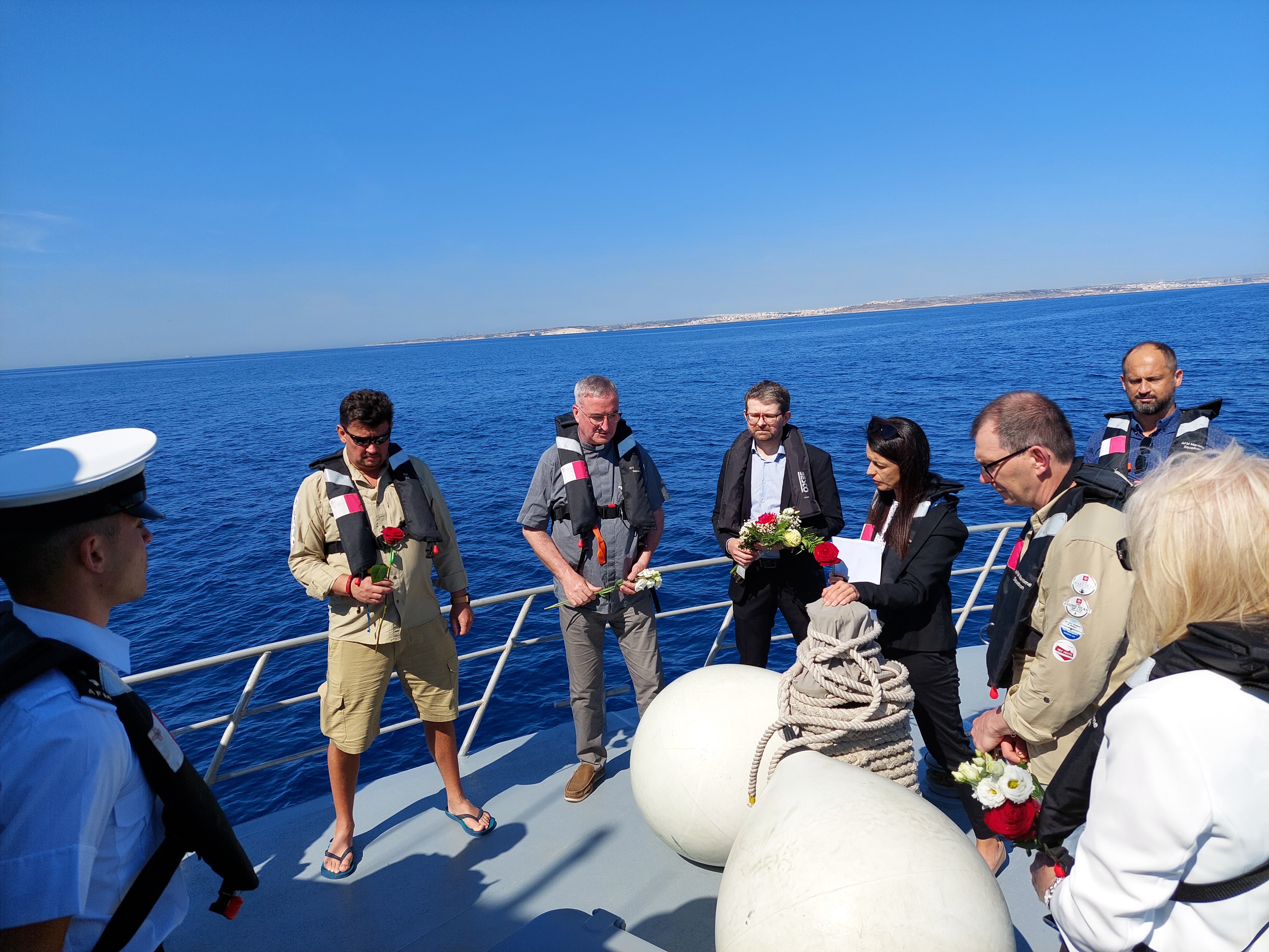 Dzięki wsparciu Sił Zbrojnych Malty niewielka grupa personelu placówki oraz reprezentantów polskiej społeczności na Malcie popłynęła wojskowym okrętem na pozycję wraku, aby uczcić śmierć załogantów niszczyciela. Wspólnie z maltańskimi żołnierzami upamiętnili ich minutą ciszy i modlitwą. Jako symboliczny gest uznania dla poświęcenia polskich marynarzy wcielających w życie hasło "Za wolność naszą i waszą" wrzucili do morza biało-czerwone kwiaty. Odczytany został również fragment wiersza K.K. Baczyńskiego pt. "Ballada morska".