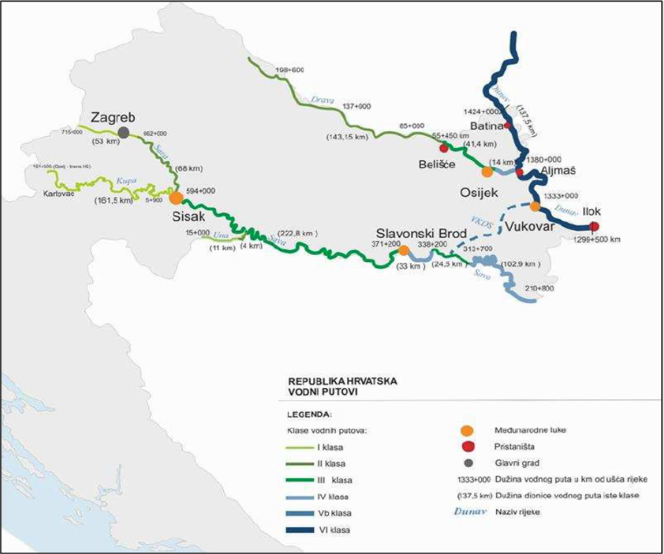 Główne rzeki żeglowne to: Dunaj, Sawa i Drawa. W ostatnich latach Chorwacja poczyniła znaczne inwestycje w rozwój transeuropejskiej sieci transportowej, przede wszystkim dróg, autostrad i portów. Inwestycje w infrastrukturę transportową, telekomunikacyjną i energetyczną będą kontynuowane w przyszłości, ze szczególnym naciskiem na transport kolejowy. Stała liczba ludności Chorwacji osiągnęła 4,29 mln. Stolicą Chorwacji jest Zagrzeb.