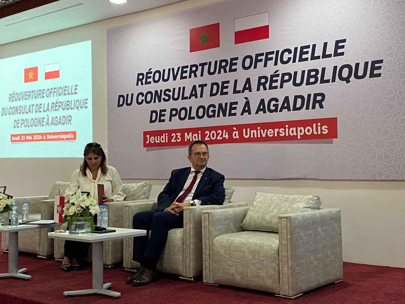 W Agadirze, 23 maja 2024 r. odbyło się ponowne otwarcie Konsulatu Rzeczypospolitej Polskiej. Listy komisyjne konsulowi honorowemu, pani Souad Bennani, przekazał Ambasador Krzysztof Karwowski. W uroczystości otwarcia konsulatu uczestniczyli także przedstawiciele Ambasady RP w Rabacie, a wśród gości obecni byli m.in. przedstawiciele merostwa Agadiru i rady miejskiej, uczelni wyższych w Agadirze oraz przewodniczący Rady Regionalnej Souss Massa, przewodniczący Generalnej Konfederacji Przedsiębiorstw Marokańskich regionu Souss Massa, przewodniczący Regionalnej Rady Turystyki, przewodniczący Izby Handlu, Przemysłu i Usług.