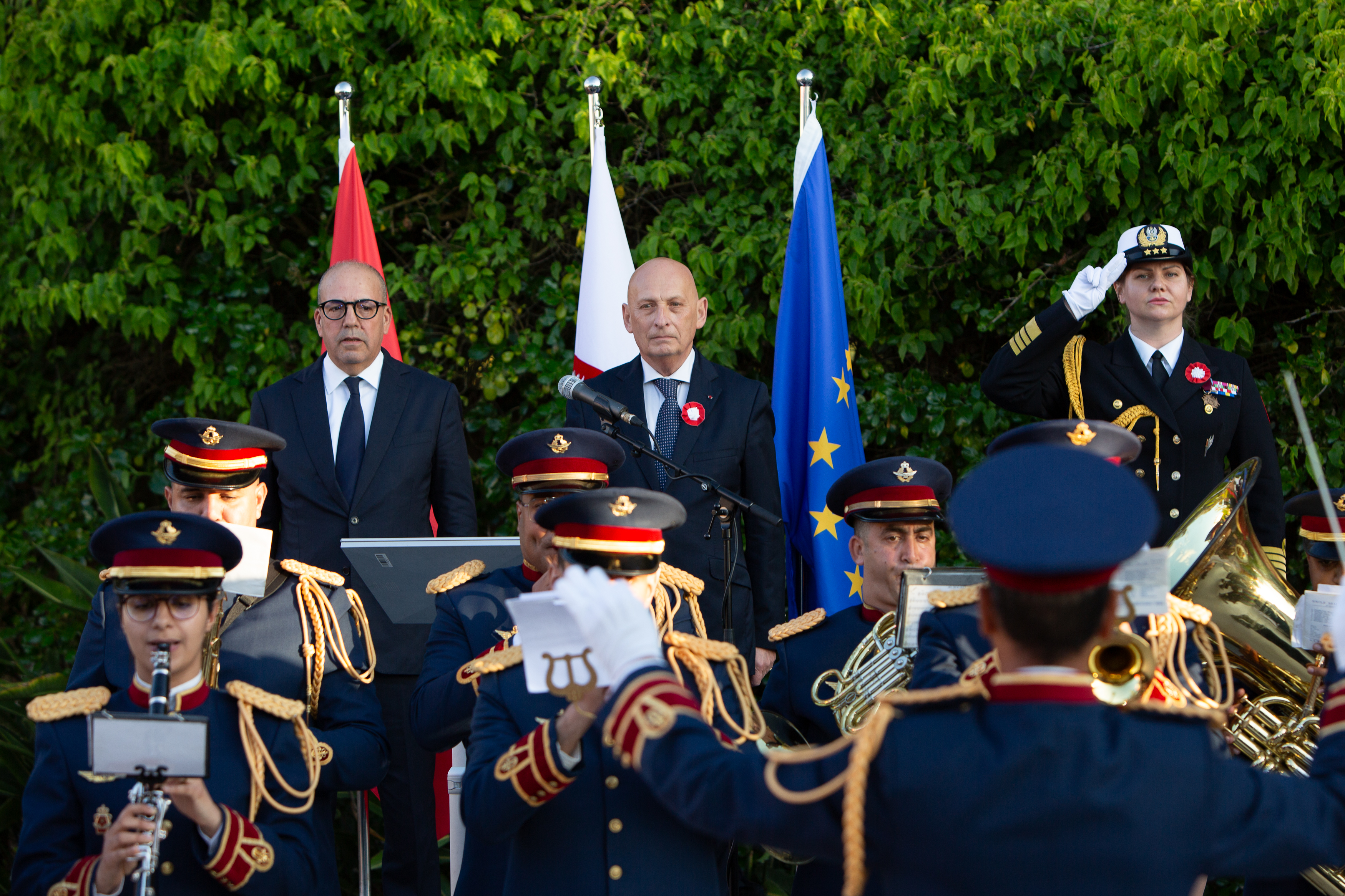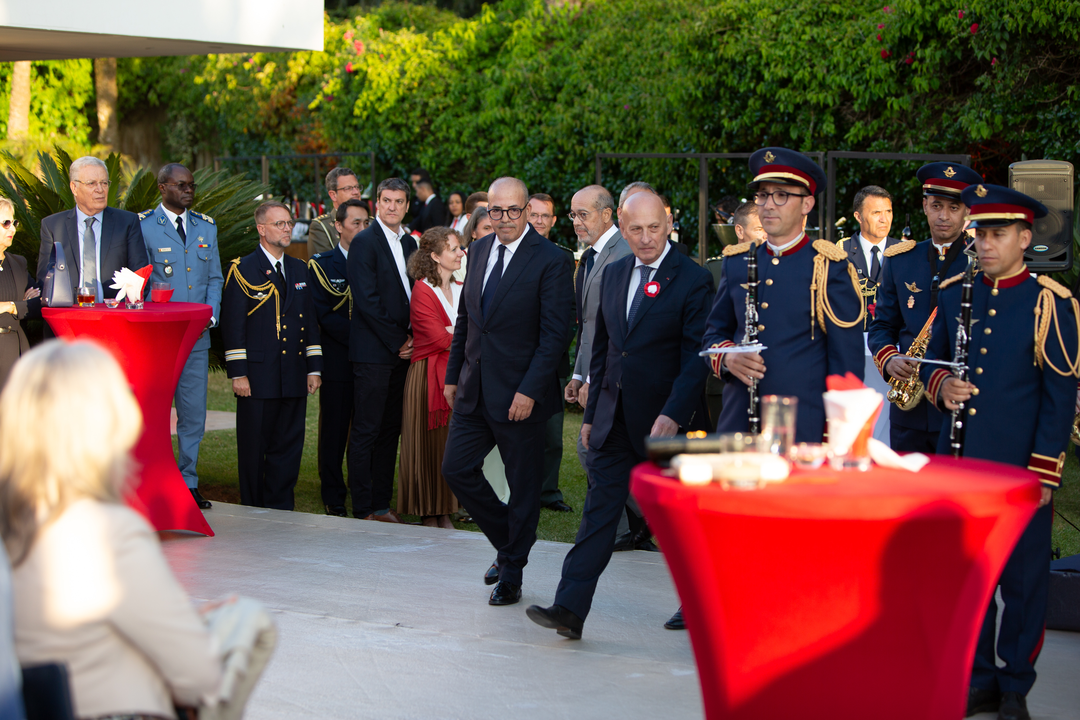 Uroczystość rozpoczęła się od odegrania hymnów narodowych – polskiego i marokańskiego – w wykonaniu Orkiestry Reprezentacyjnej Armii Marokańskiej, która po raz pierwszy uczestniczyła w takiej roli w święcie narodowym organizowanym przez placówki akredytowane w Maroku. Jej uczestnictwo było możliwe dzięki współpracy placówki i wsparciu attaché obrony RP z Madrytu, akredytowanej w Maroku, kmdr Doroty Stachury. W swoim wystąpieniu podczas uroczystości Ambasador Tomasz Orłowski podkreślił znaczenie Konstytucji 3 Maja jako symbolu polskiego dążenia do reform, nowoczesności i wolności. Zwrócił także uwagę na dynamiczny rozwój relacji dwustronnych w ostatnich latach, szczególnie rozwoju handlu, inwestycji oraz wspólnych inicjatyw w obszarze gospodarki, edukacji i współpracy samorządowej i międzyregionalnej. Minister Bouari z kolei zaznaczył wagę relacji z Polską, ich dynamikę i znaczenie dla rozwoju dwustronnej współpracy, w tym współpracy swojego resortu rolnictwa. Przypomniał swoje spotkanie z ministrem rolnictwa Czesławem Siekierskim podczas Międzynarodowych Targów Rolniczych w Paryżu w lutym br. i potwierdził skorzystanie z jego zaproszenia do złożenia wizyty w Polsce w najbliższym okresie.