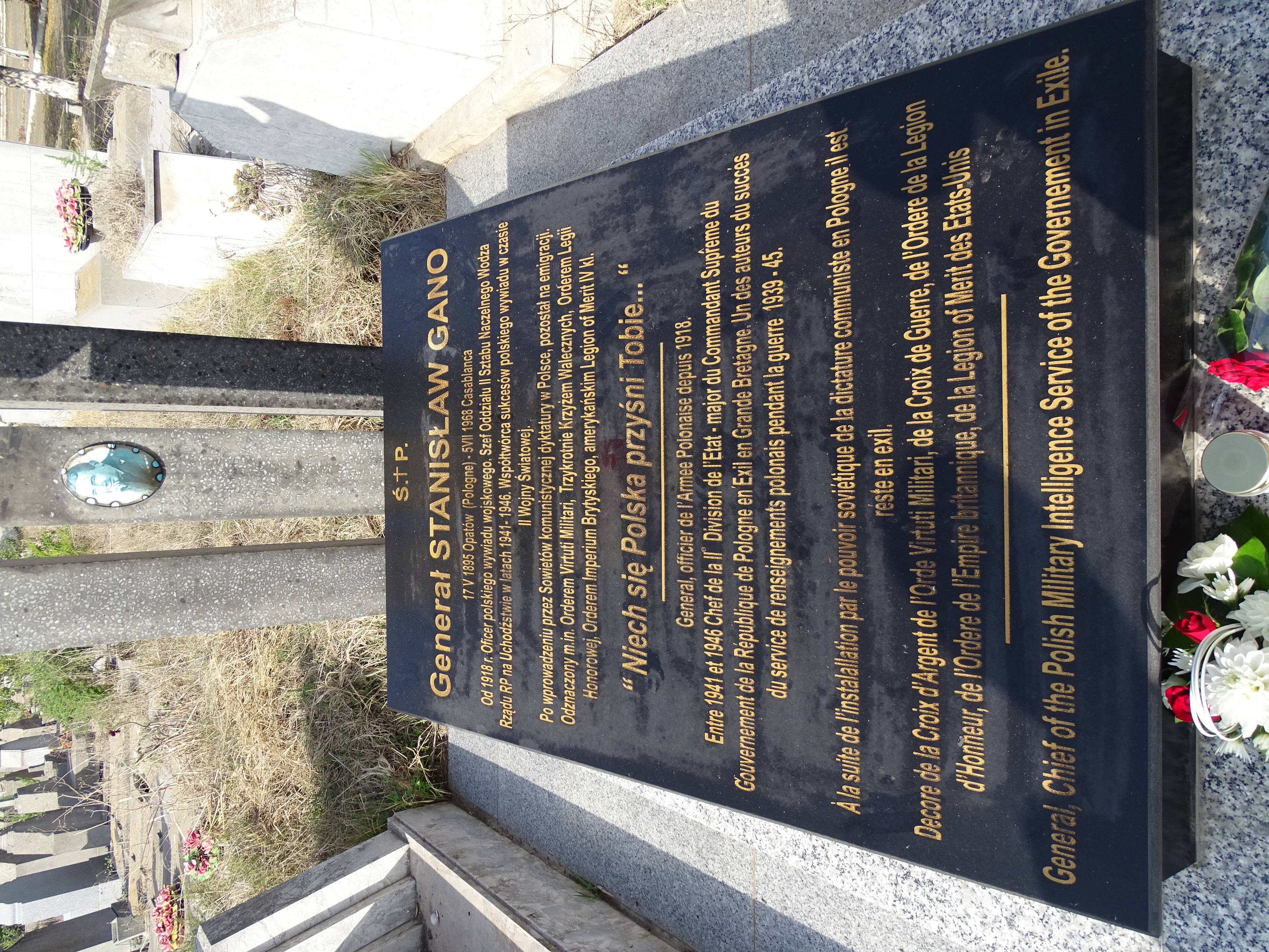Generał Stanisław Gano leży na cmentarzu w Casablance. Można go odwiedzić lub zwyczajnie, przechodząc koło jego grobu, warto przypomnieć sobie słowa jego rozkazu pożegnalnego, które w 1947 roku skierował do pracowników i agentów likwidowanego właśnie polskiego wywiadu, podsumowując, że podległa mu służba była "bezsprzecznie dobrym i wydajnym zespołem rozsianym na wszystkich frontach i zapleczach frontów, wkładającym w ogólny wysiłek wojenny świata swoją część wysiłku, niewspółmiernie nawet wielką w stosunku do ograniczonych możliwości [...]"[7]
