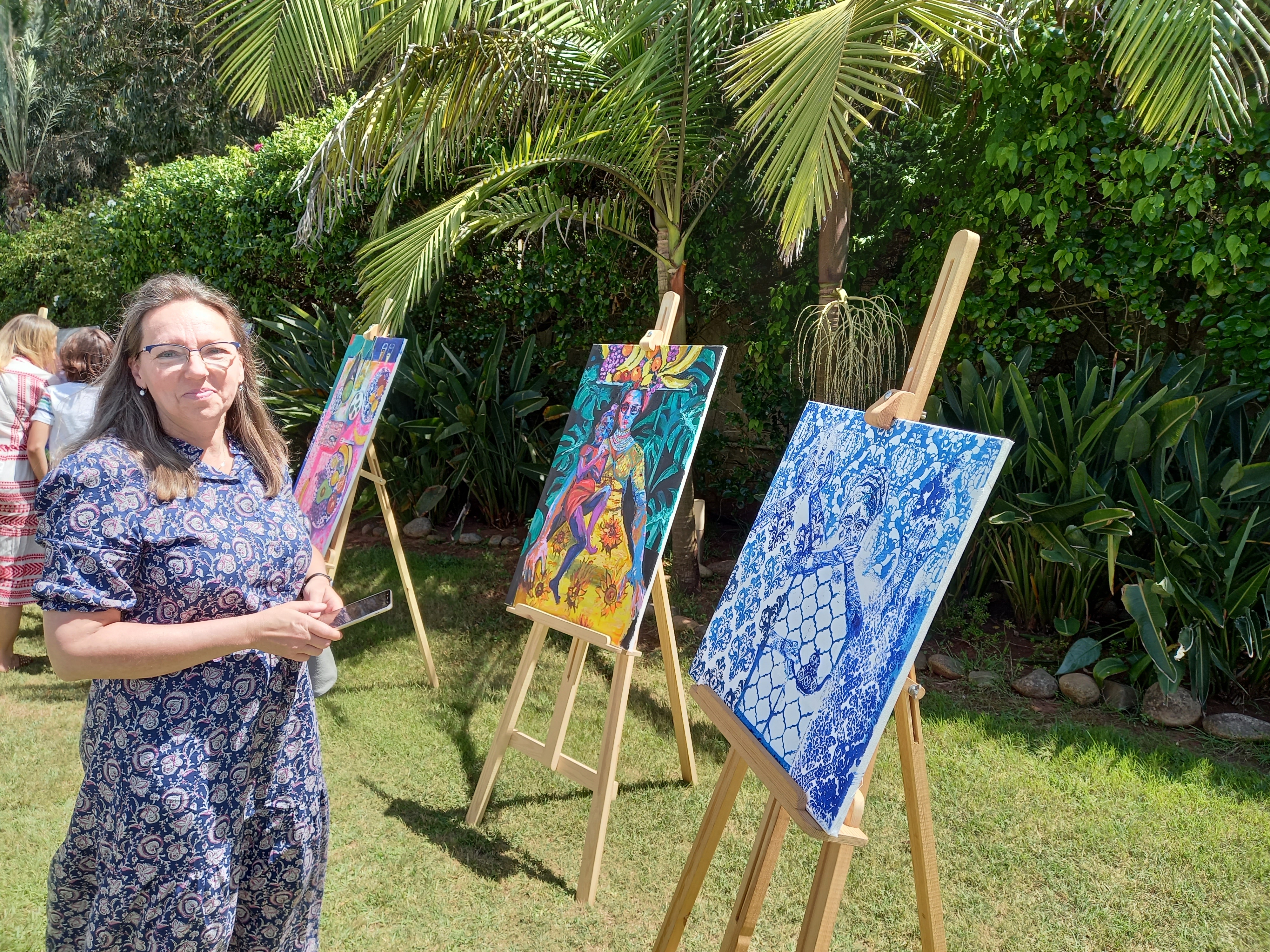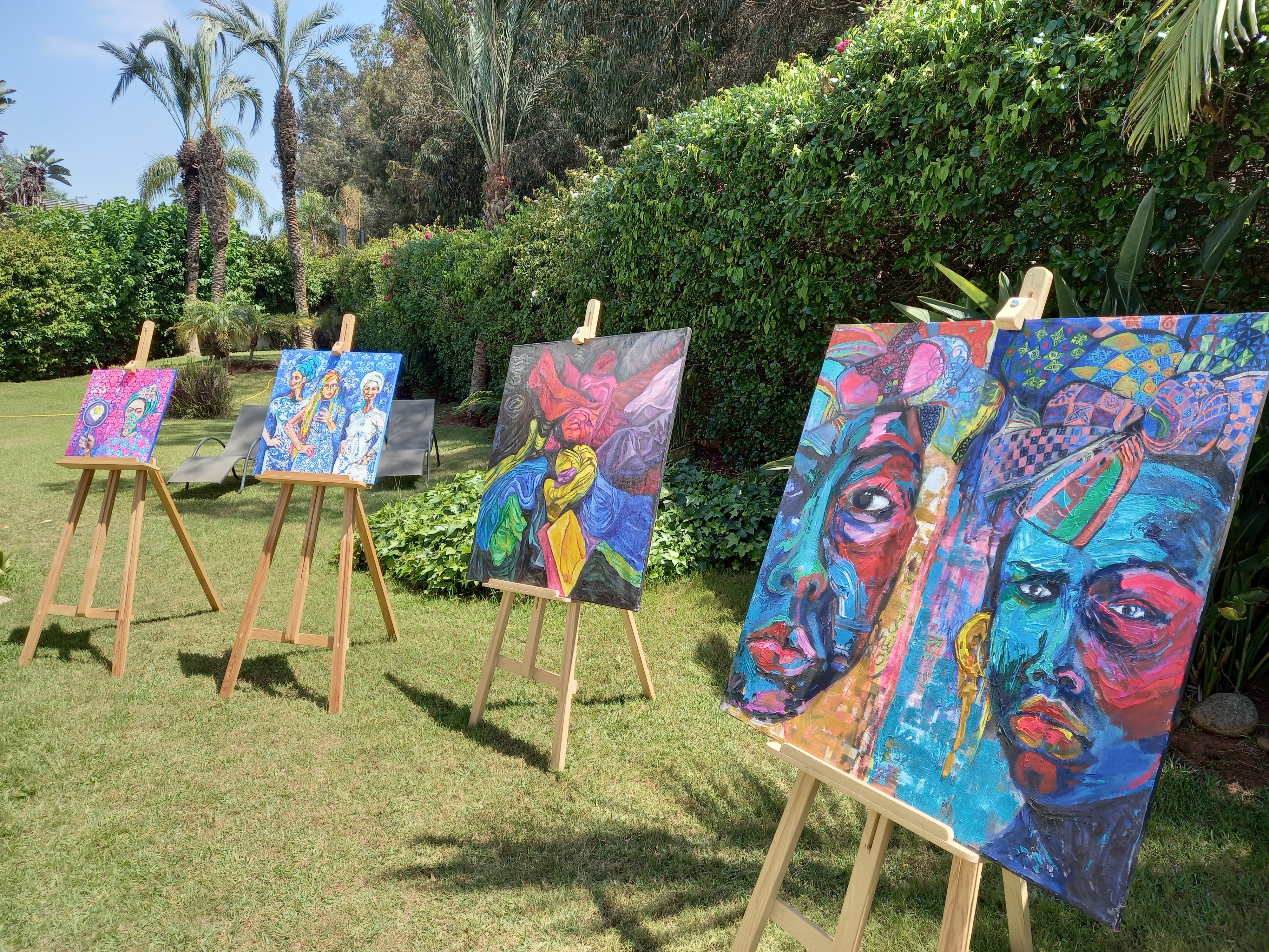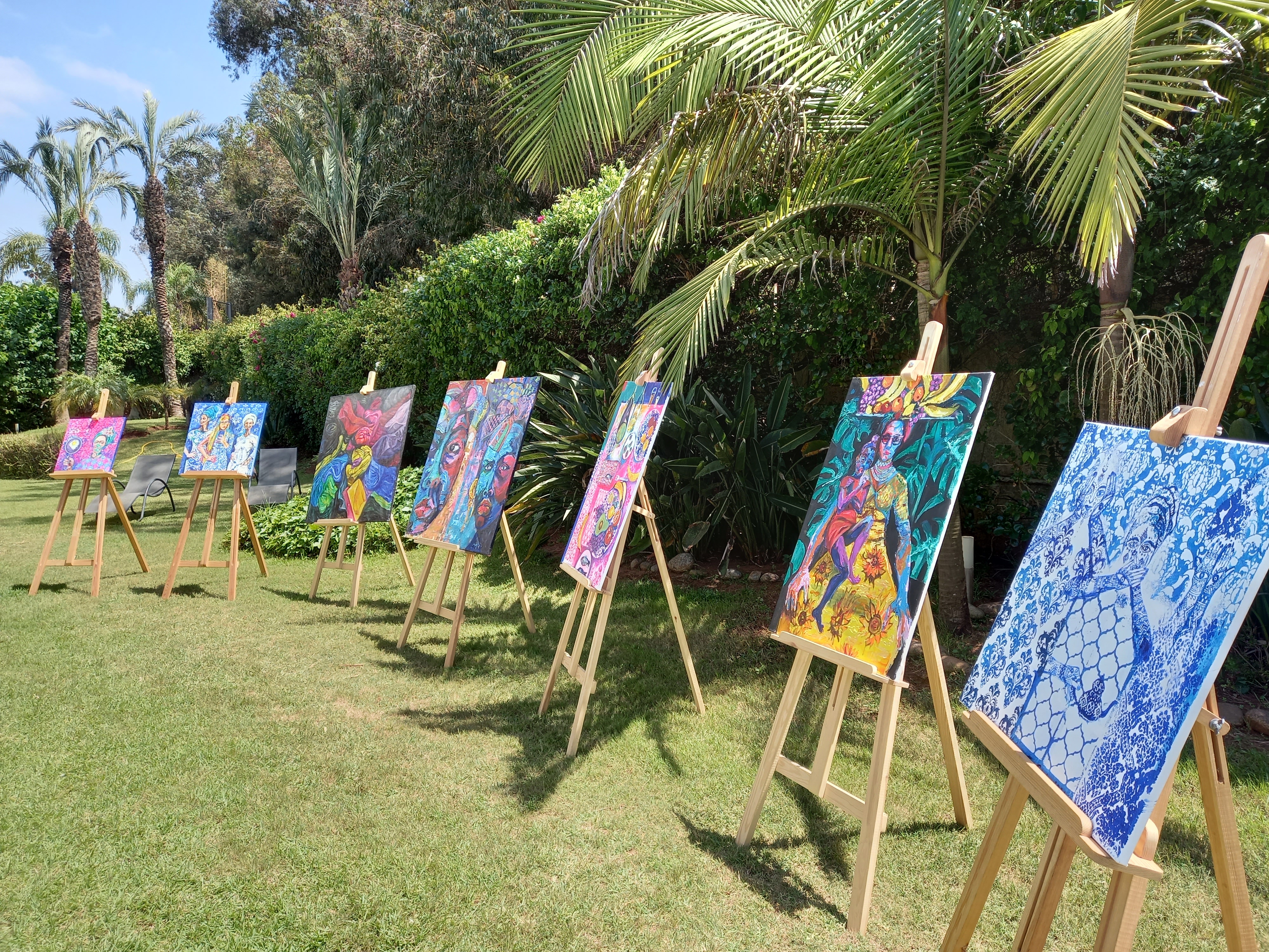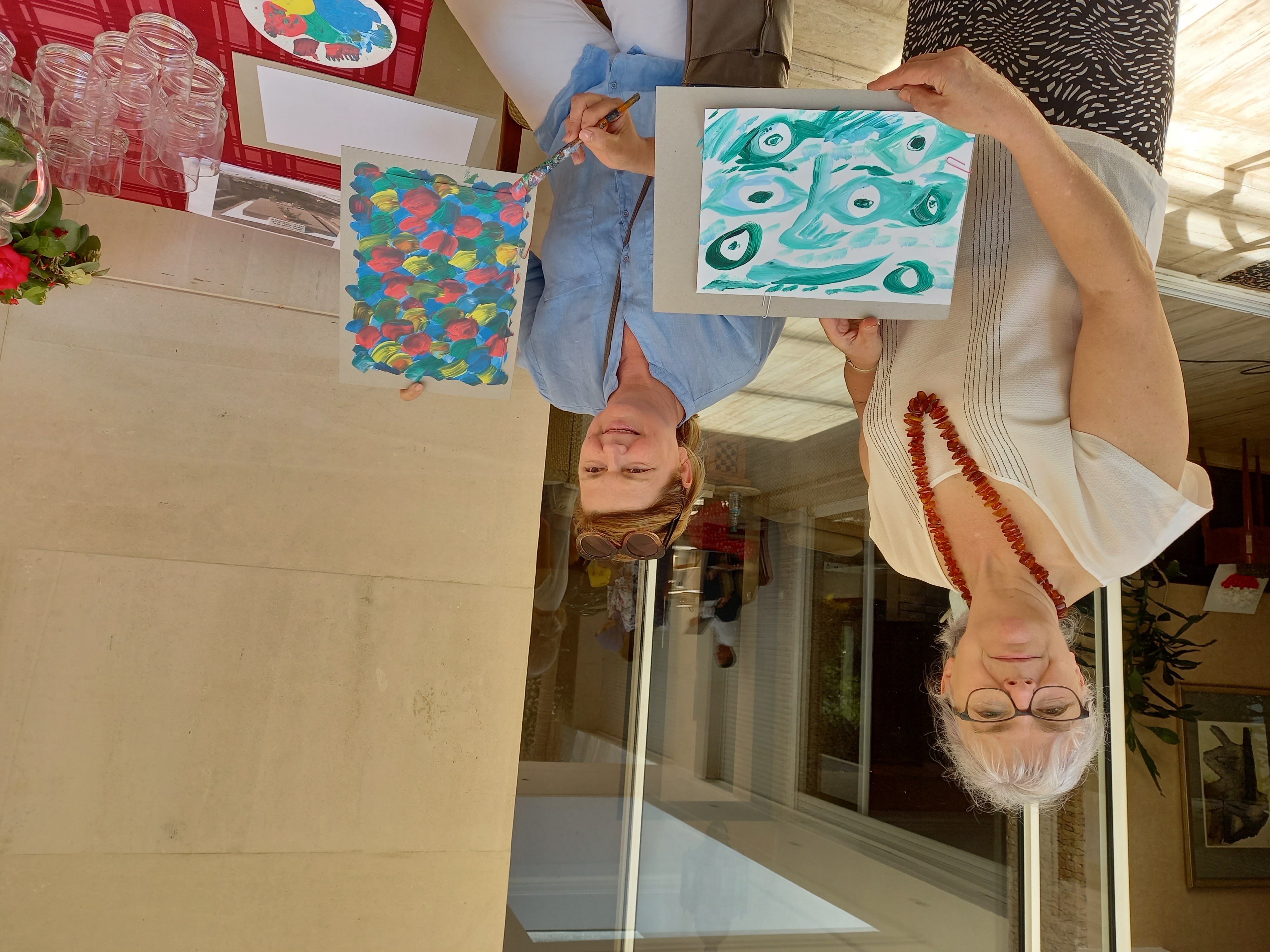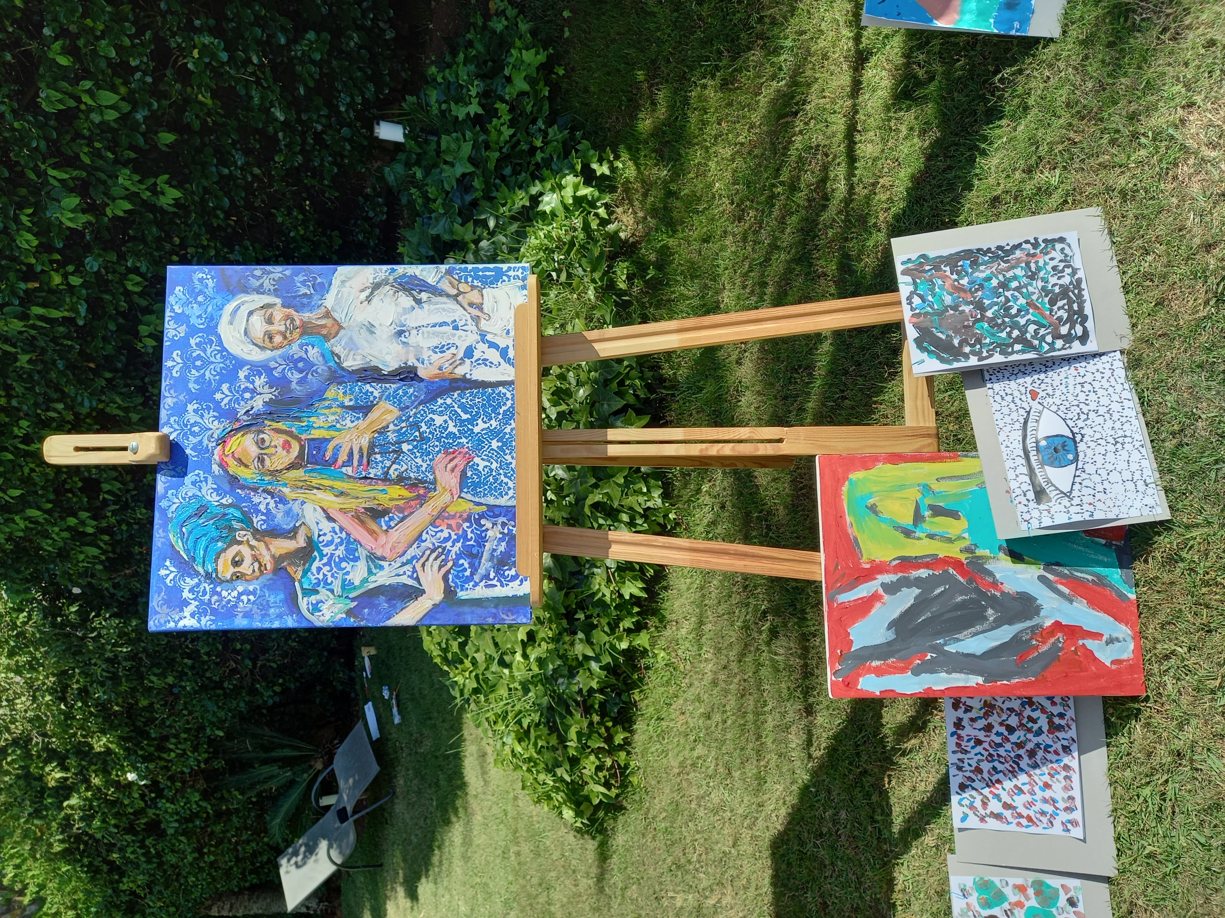 Profesjonalne atrybuty malarskie,odwaga,wyobraźnia oraz kreatywność uczystników zrodziły interesujące prace,których wystawa zwieńczyła spotkanie.