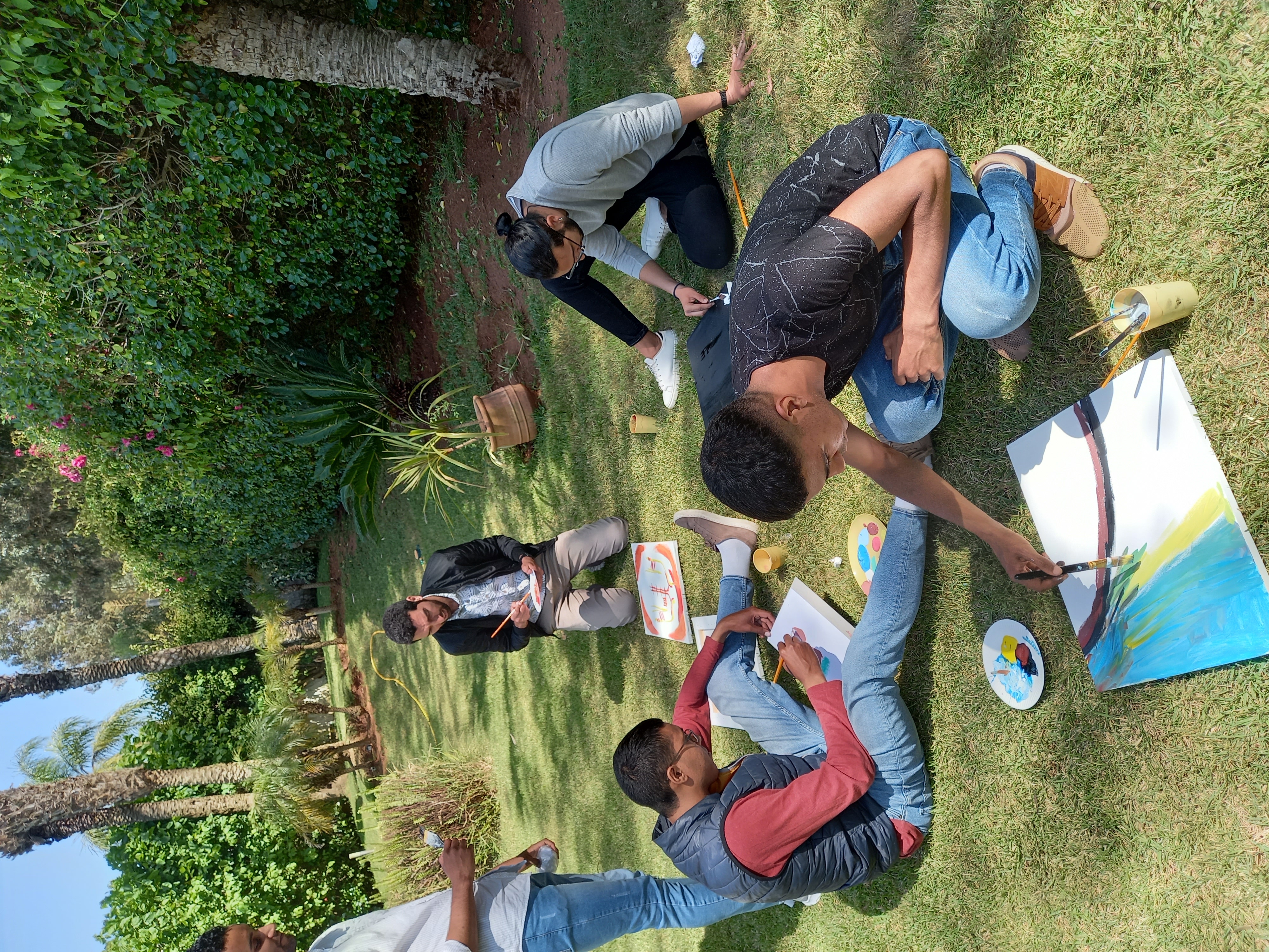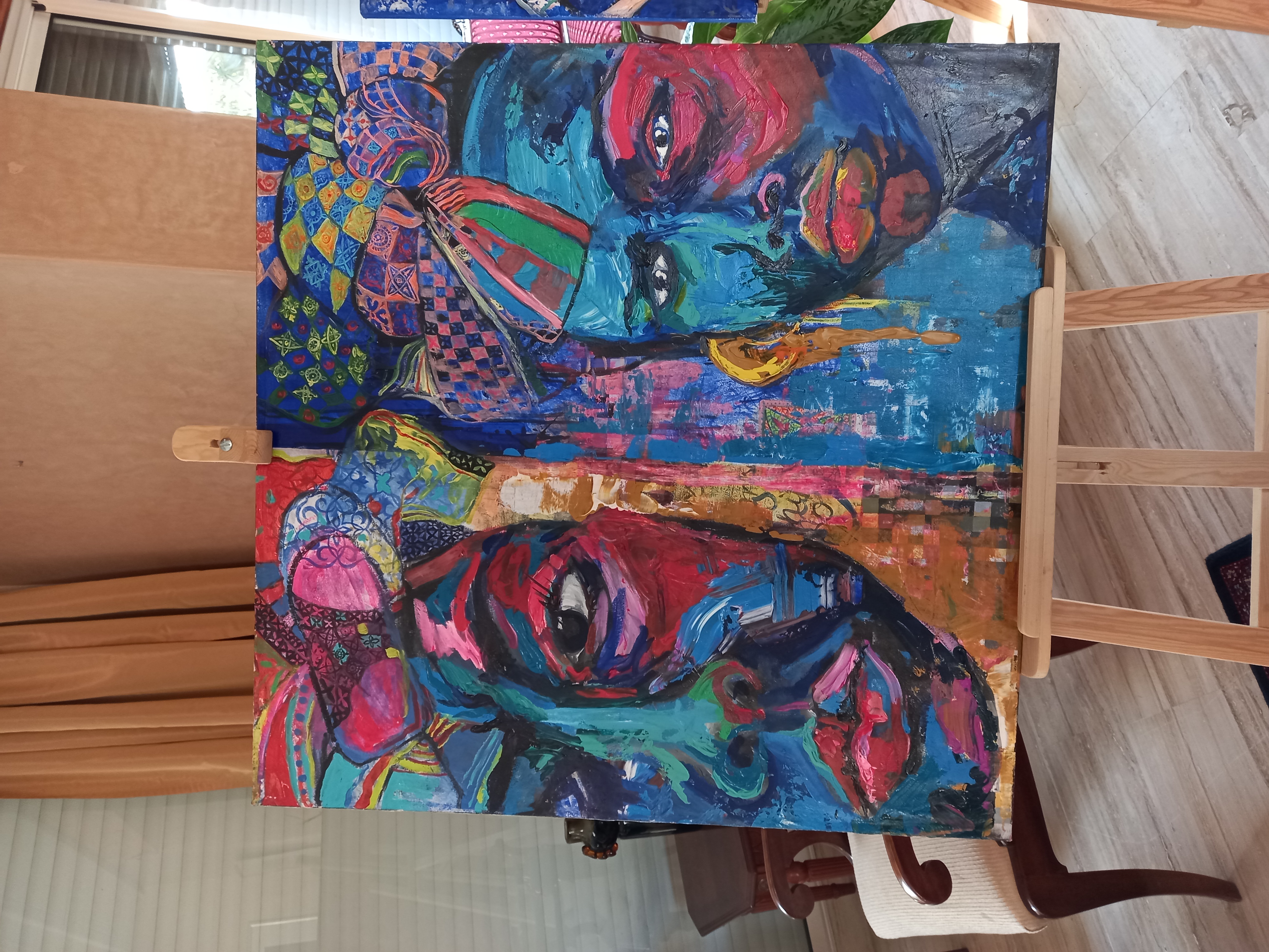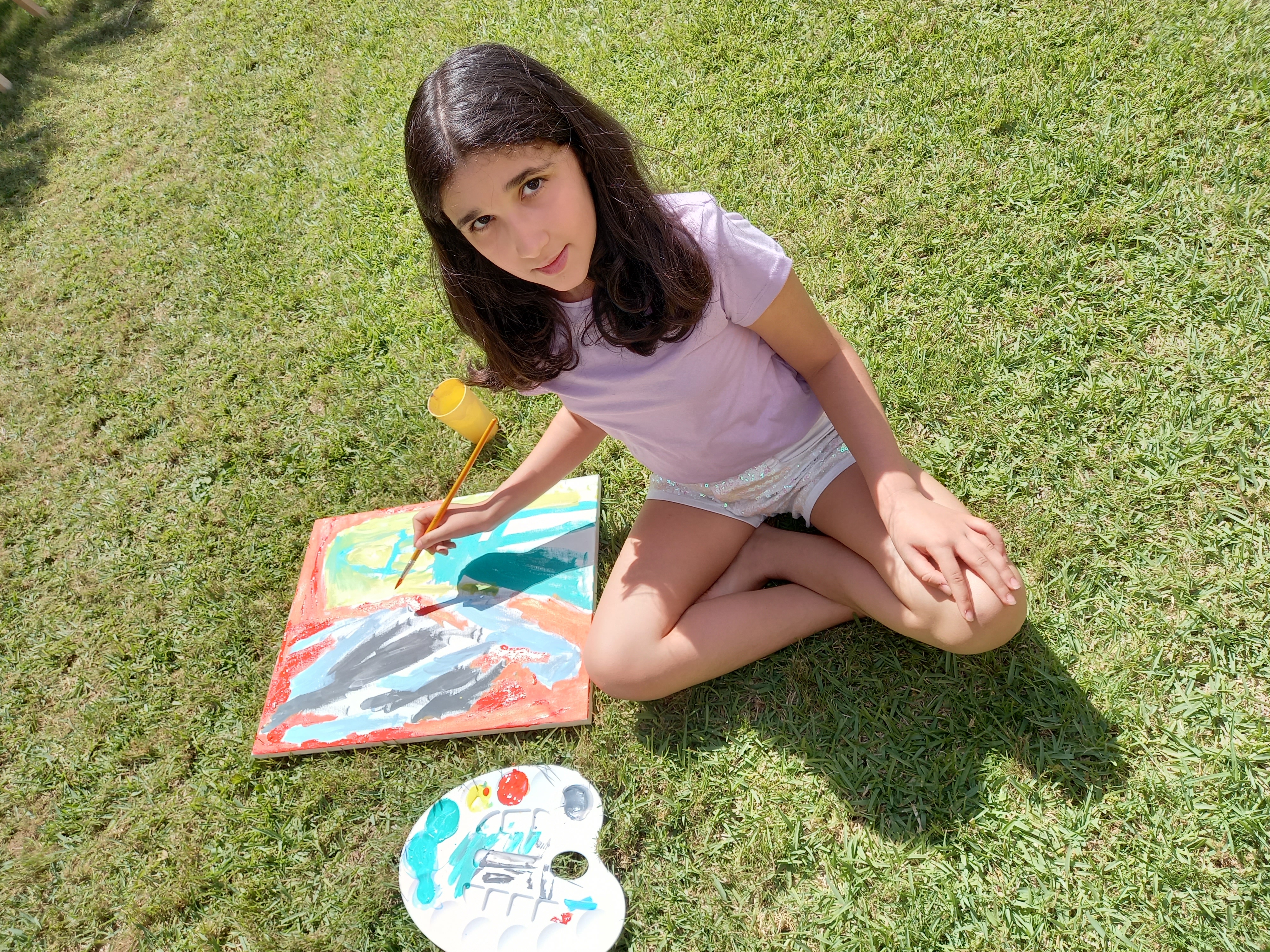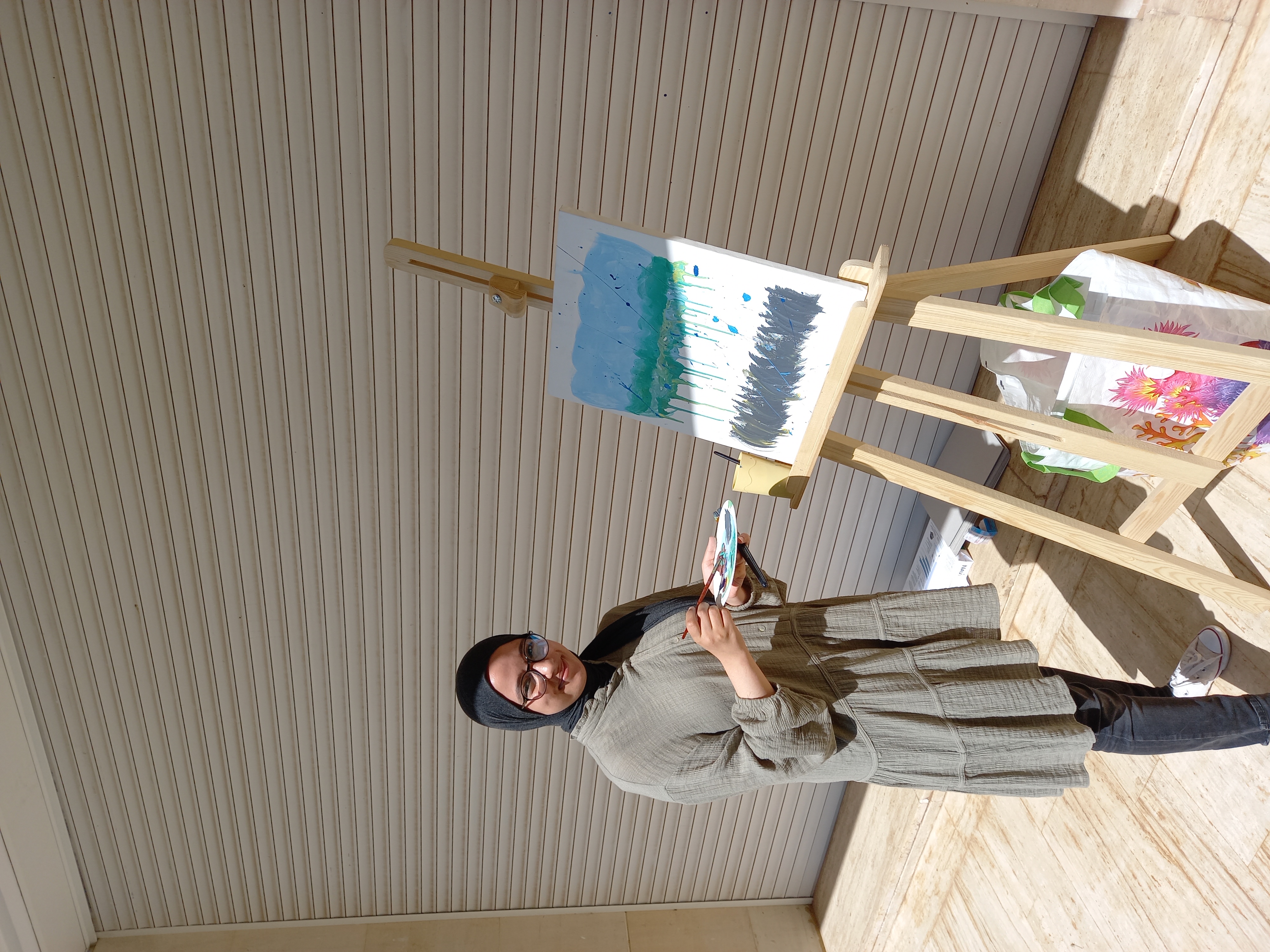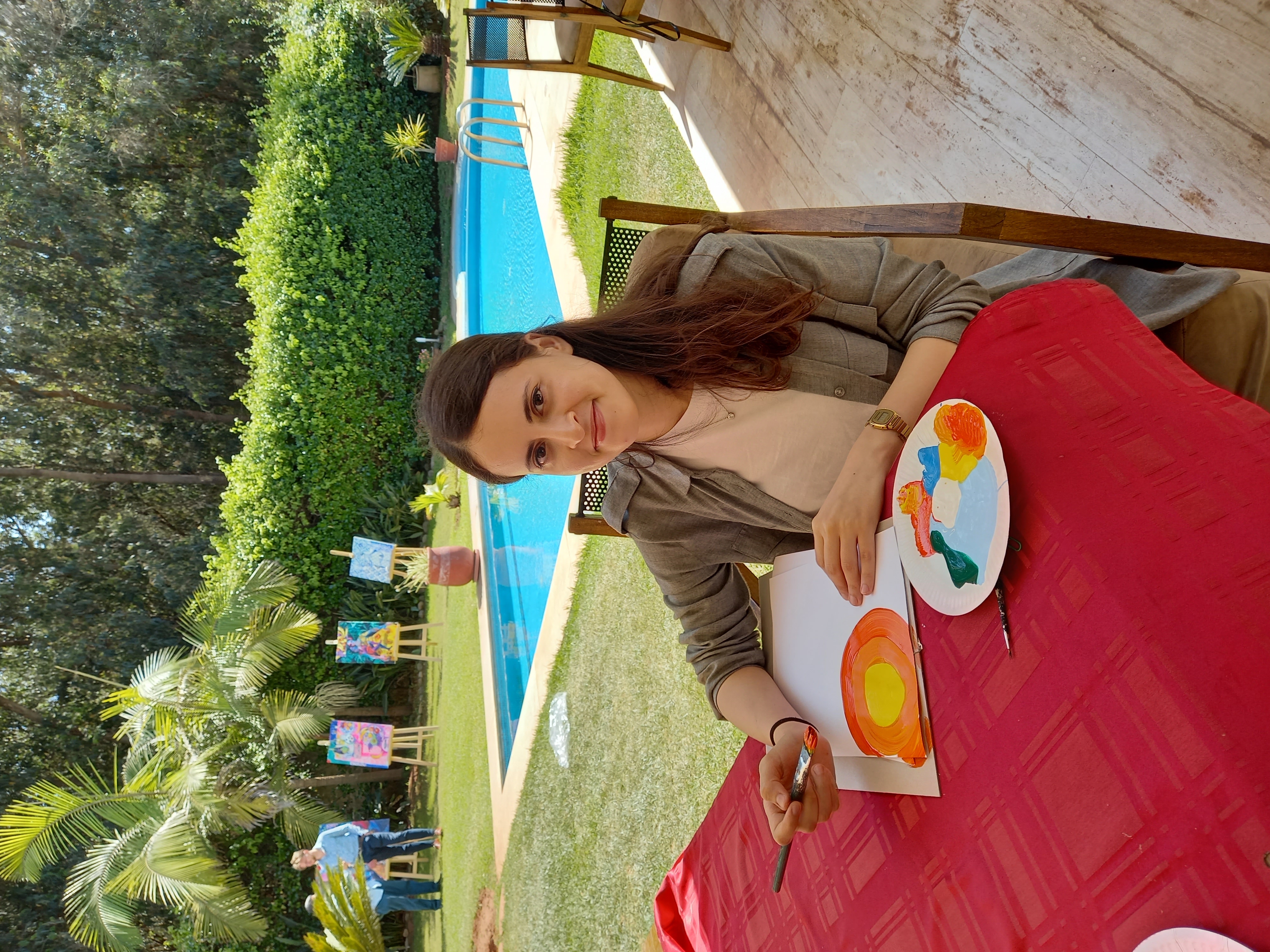 Profesjonalne atrybuty malarskie,odwaga,wyobraźnia oraz kreatywność uczystników zrodziły interesujące prace,których wystawa zwieńczyła spotkanie.