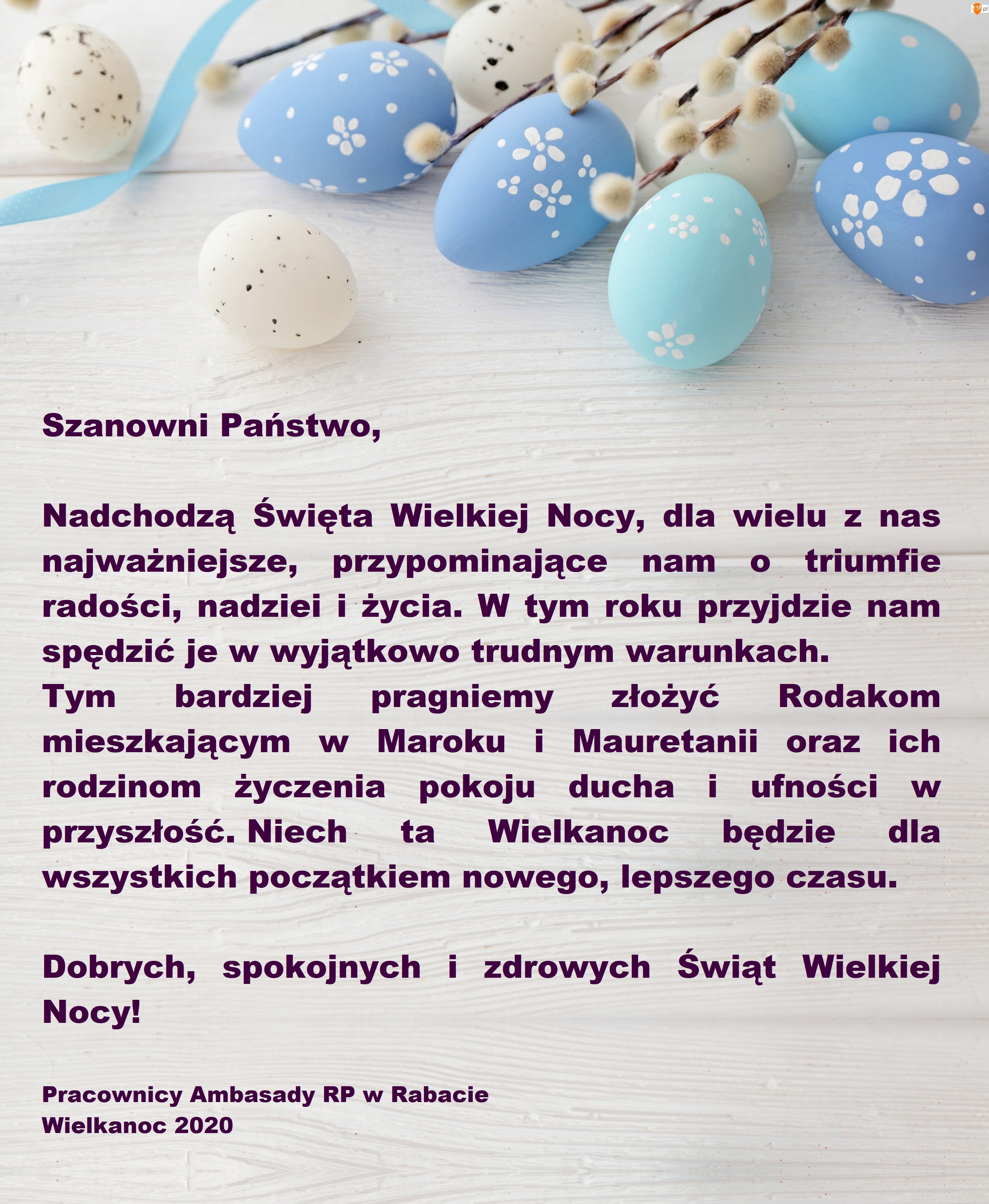 Dobrych, spokojnych i zdrowych Świąt Wielkiej Nocy życzą pracownicy Ambasady RP w Rabacie.