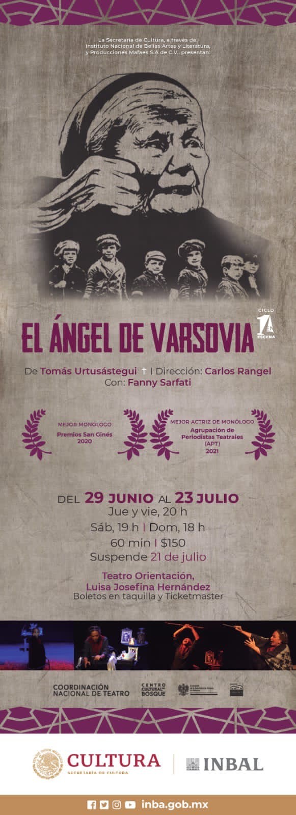 "Anioł z Warszawy" to monolog, w wykonaniu wielkokrotnie nagradzanej aktorki Fanny Sarfati, prezentujący wzruszającą historię życia Ireny Sendler, Sprawiedliwej wśród Narodów Świata.