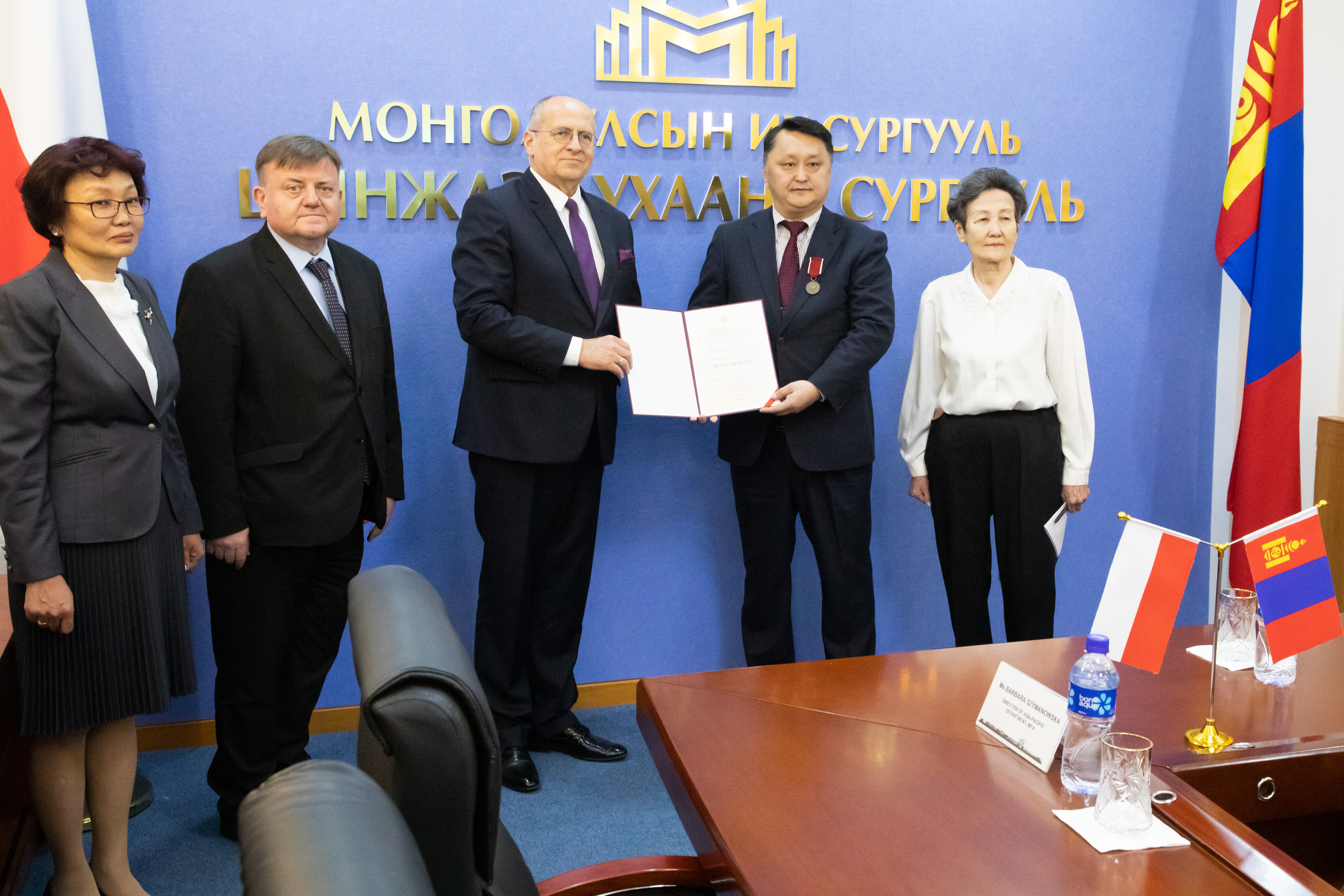 W trakcie wizyty Minister Spraw Zagranicznych odwiedził też Państwowy Uniwersytet Mongolski. W gmachu najstarszej mongolskiej uczelni Minister Rau odsłonił tablicę upamiętniającą nadanie w 2008 r. doktoratu honoris causa Prezydentowi Lechowi Kaczyńskiemu. Odznaczył również Odznaką Honorową „Bene Merito” Rektora PUM, pana Bayanjargal Ochirkhuyaga, oraz spotkał się z mongolskimi absolwentami polskich uczelni.