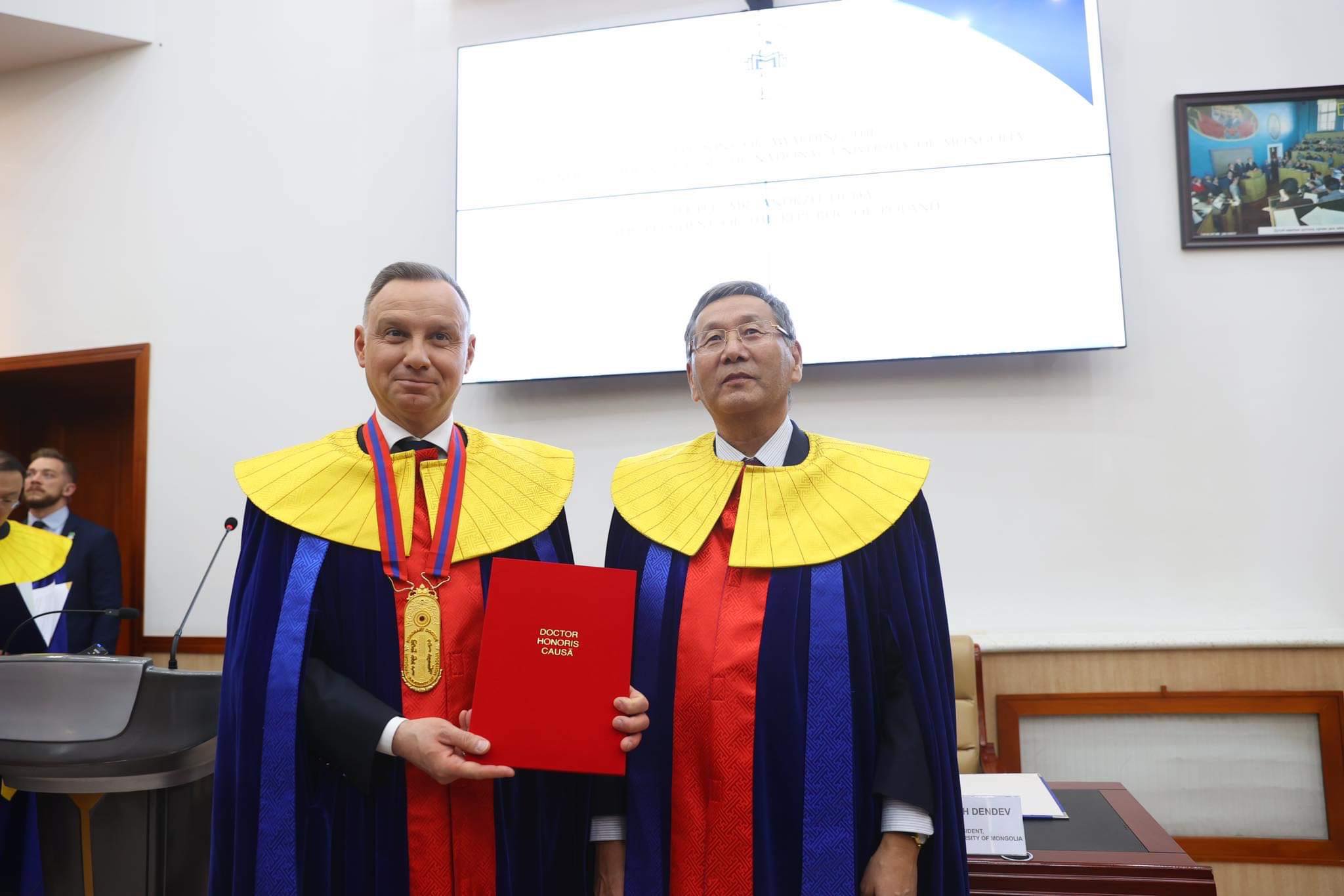 W dniu 26 kwietnia Prezydent Andrzej Duda otrzymał doktorat honoris-causa Państwowego Uniwersytetu Mongolskiego. W wygłoszonym z tej okazji wykładzie na najstarszej mongolskiej uczelni Prezydent mówił o wkładzie polskich naukowców w badania nad językiem mongolskim oraz popularyzowanie wiedzy o Mongolii. Podkreślił również znaczenie prawa międzynarodowego i przestrzegł przed próbami przywrócenia świata opartego „na prawie siły, a nie sile prawa”, czego przejawem jest brutalna agresja Rosji na Ukrainę.